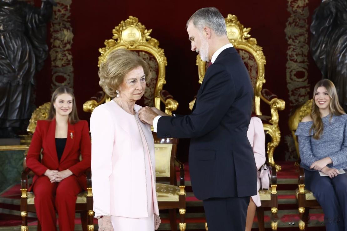 11月21日,西班牙马德里皇宫的金羊毛授勋仪式超有看点!现年87岁的索菲亚王后获