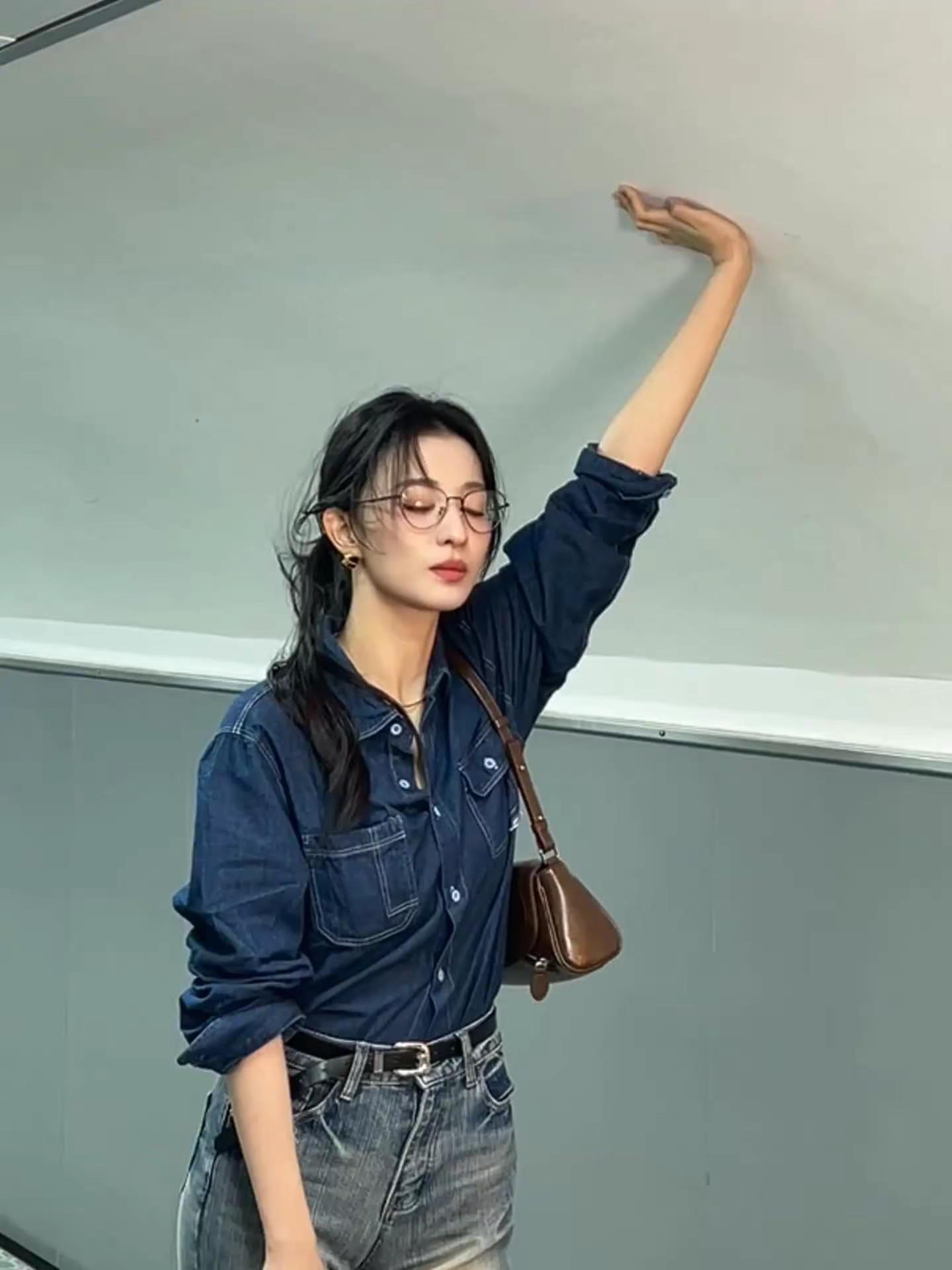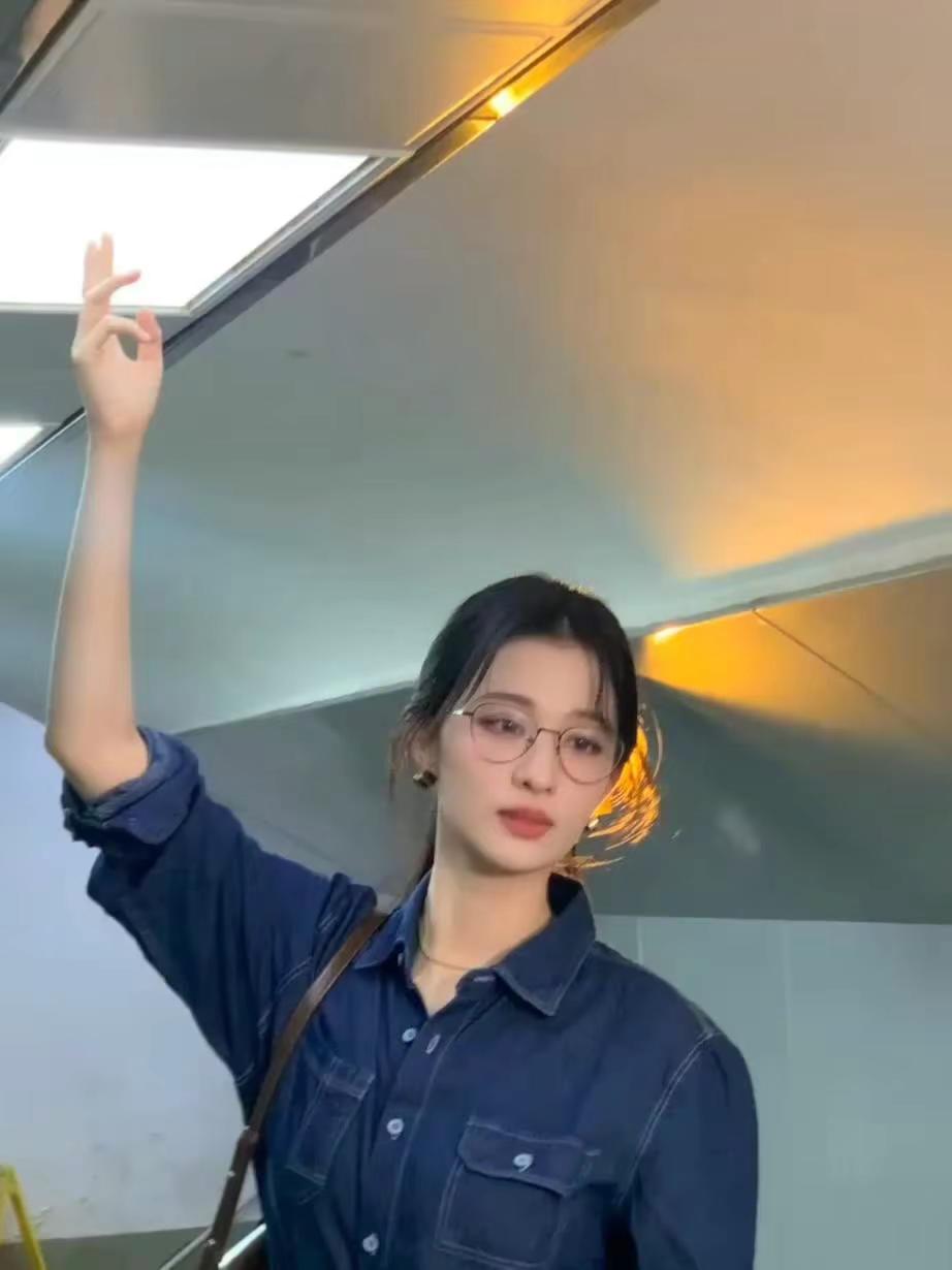 王楚然单马尾戴眼镜造型,冷艳高智御姐感!!
