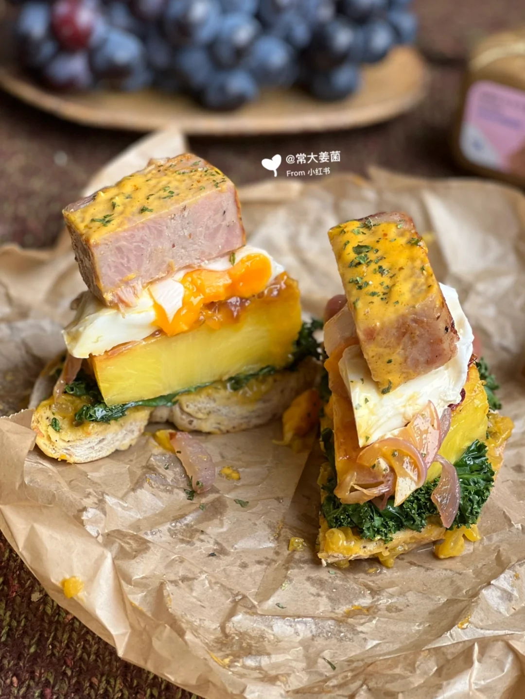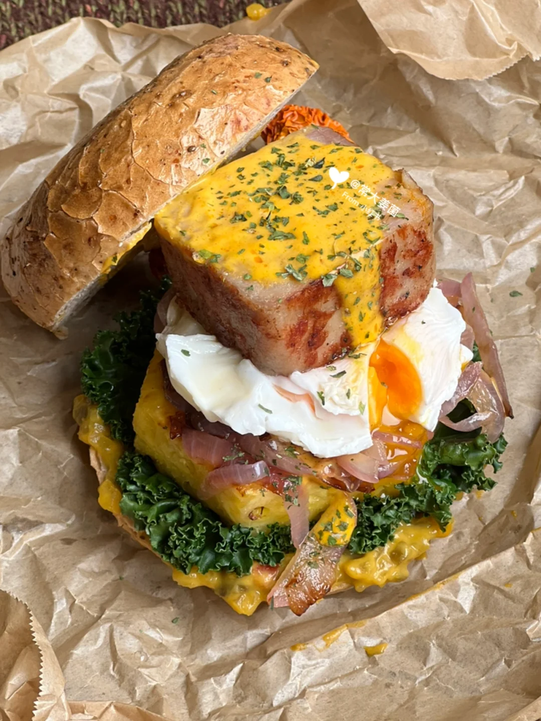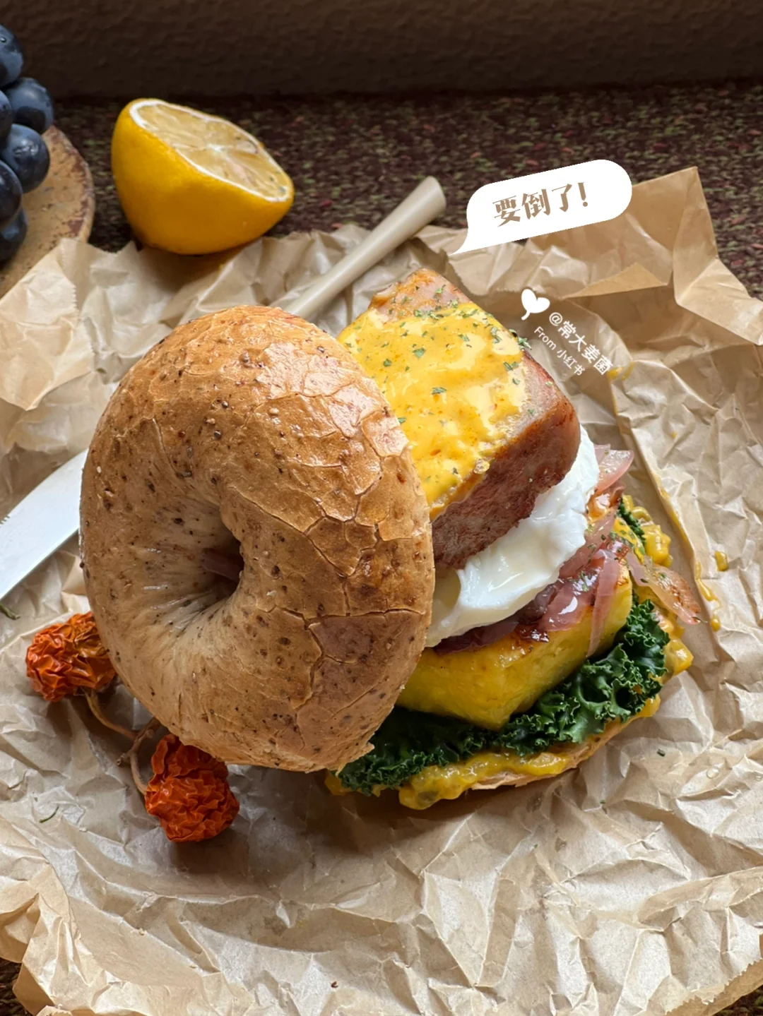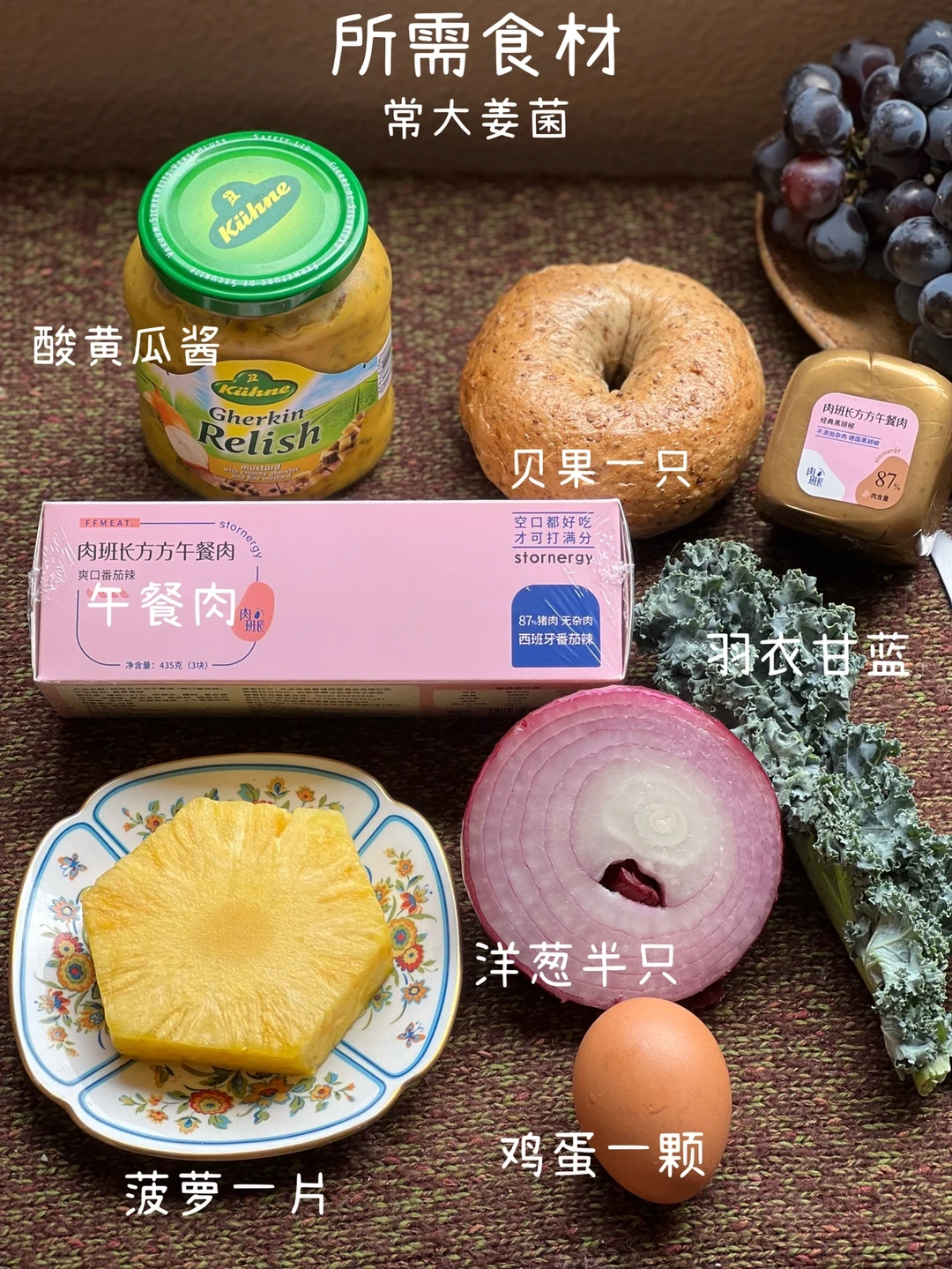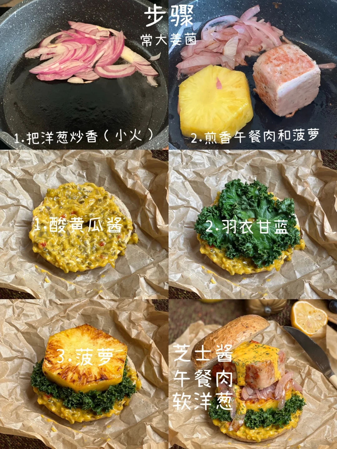 🍍凤梨洋葱午餐肉贝果汉堡🍔一口塞不下!