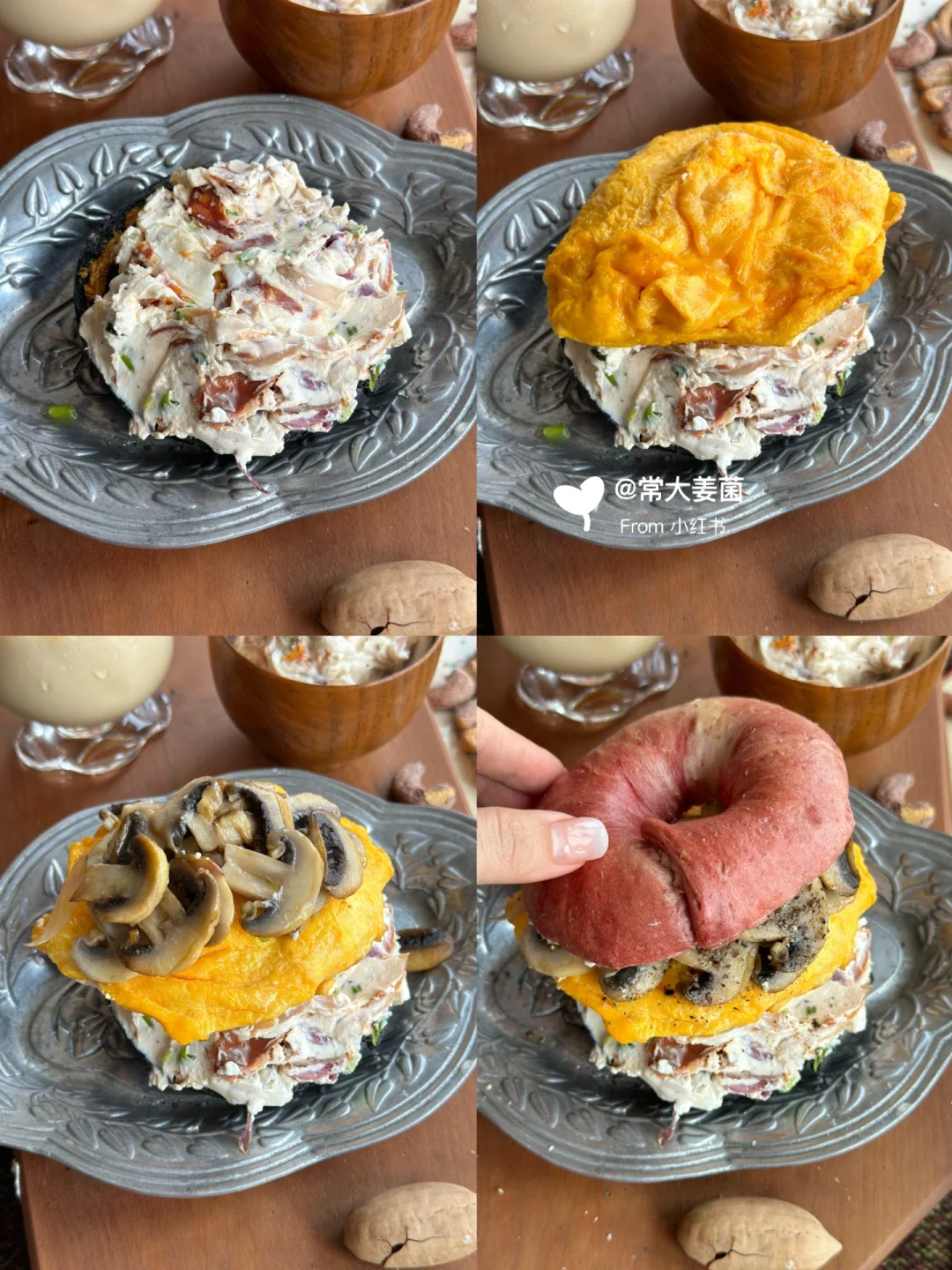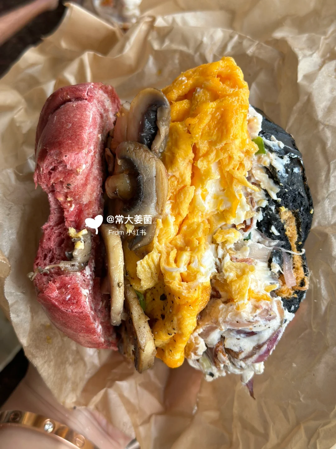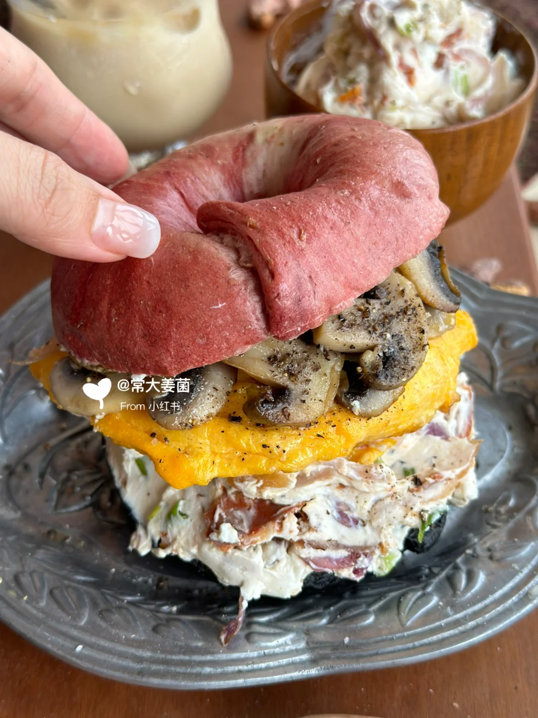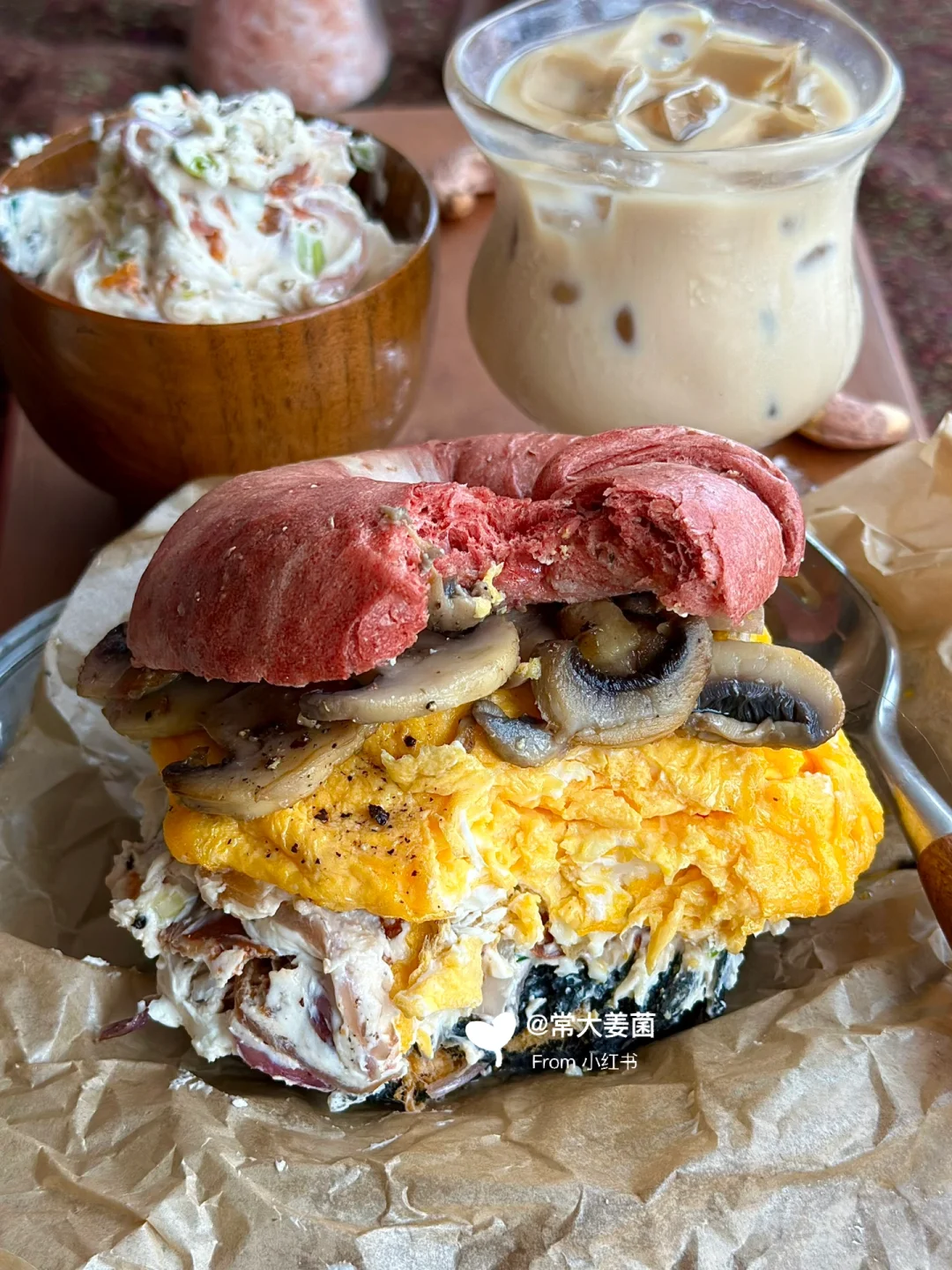 超满足!!厚厚的滑蛋&洋葱奶酪🧀贝果三明治