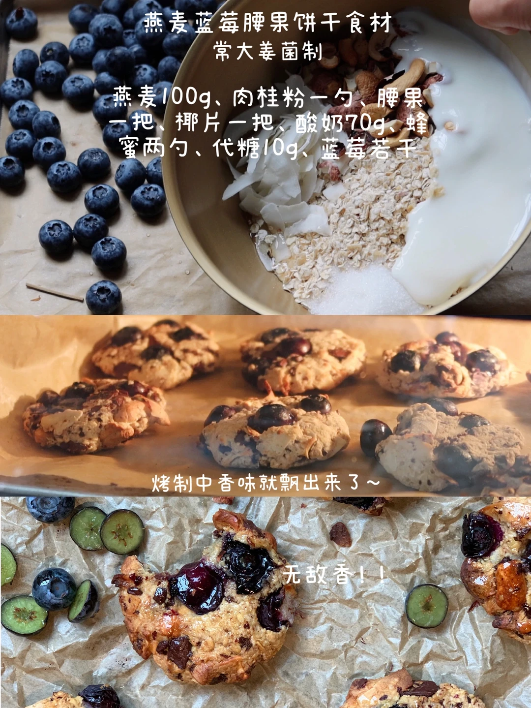 0面0油|燕麦腰果蓝莓饼干🍪香飞天!!