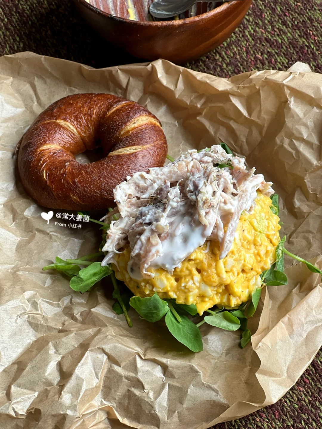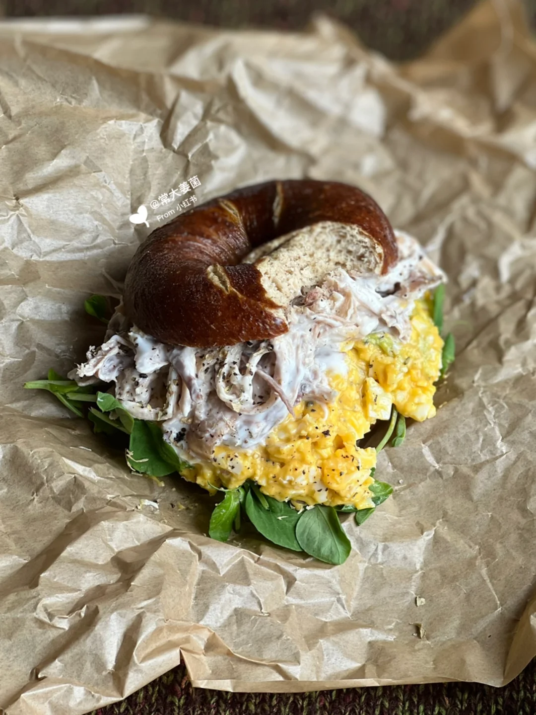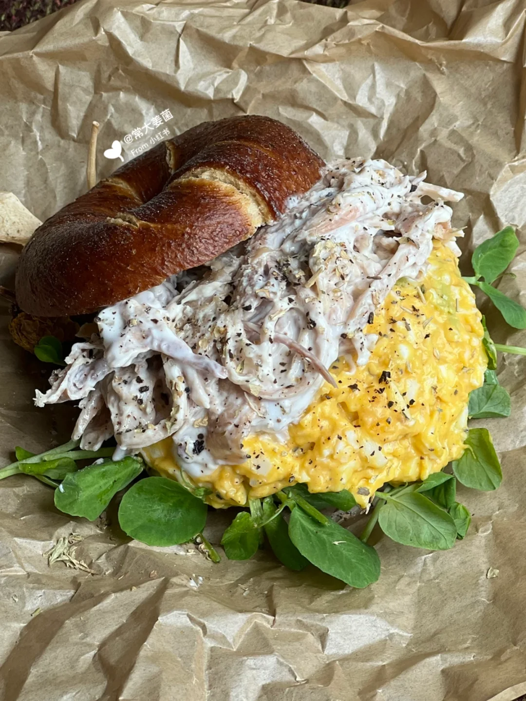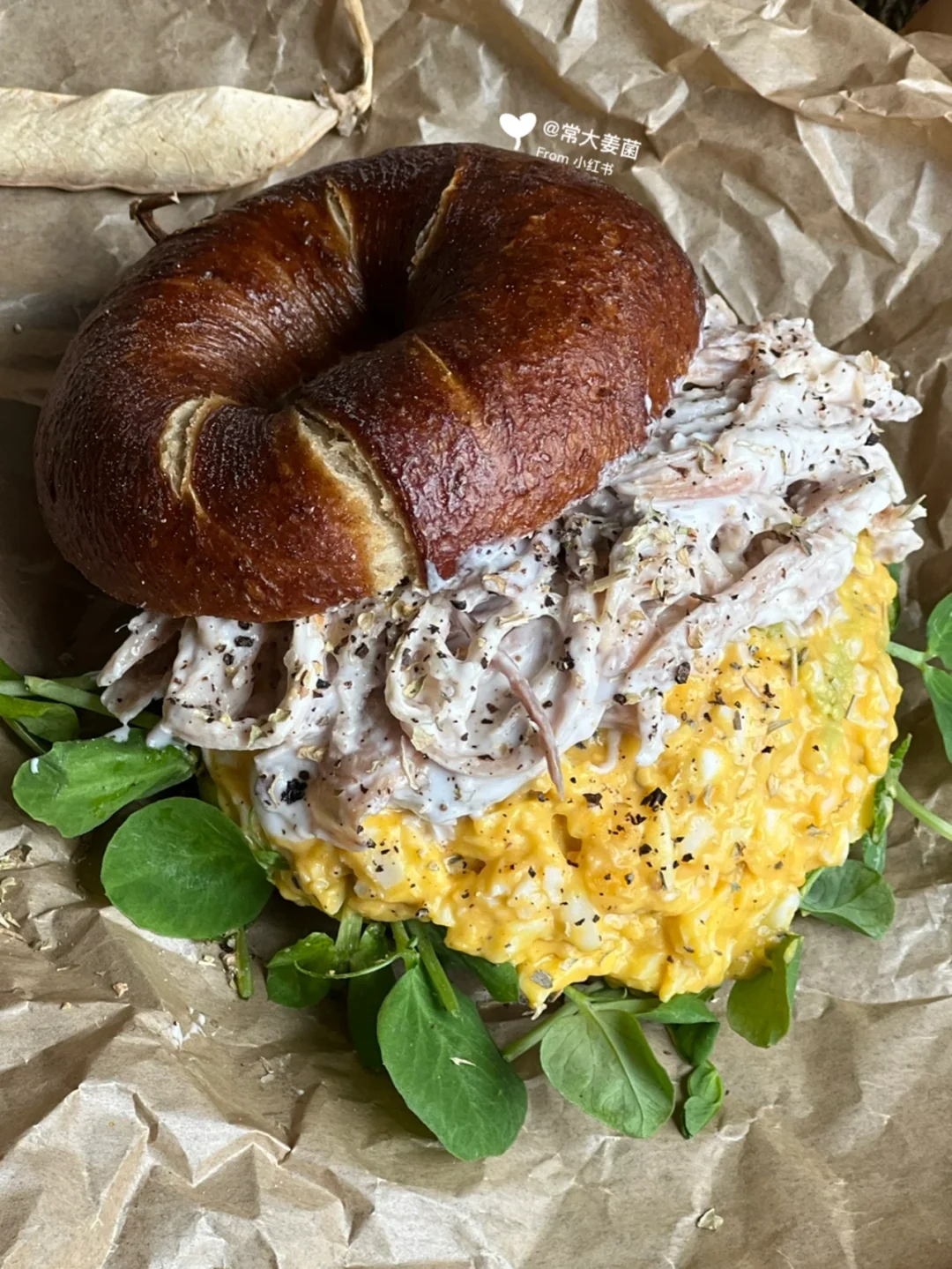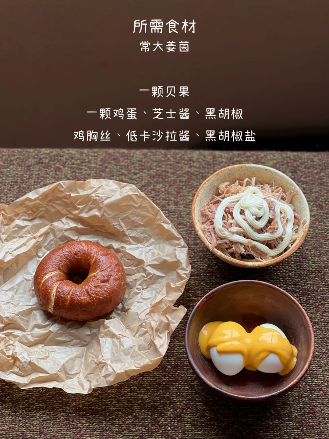 低卡蛋黄酱&鸡丝碱水贝果三明治🥯🥚香晕人!