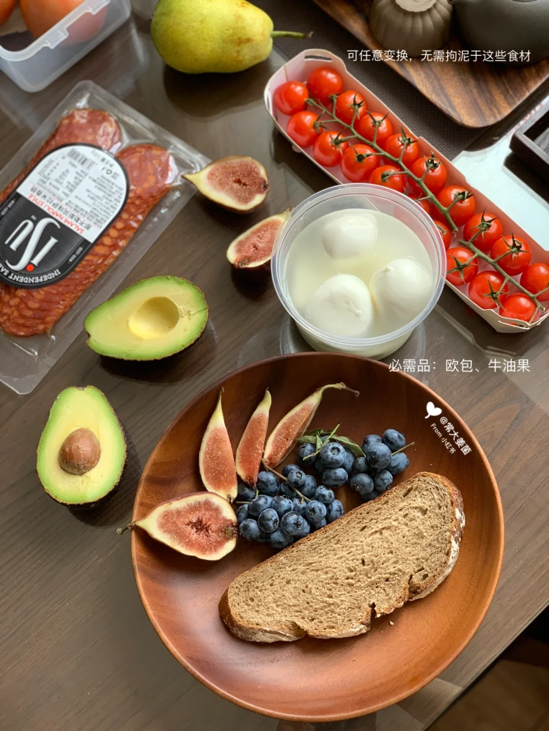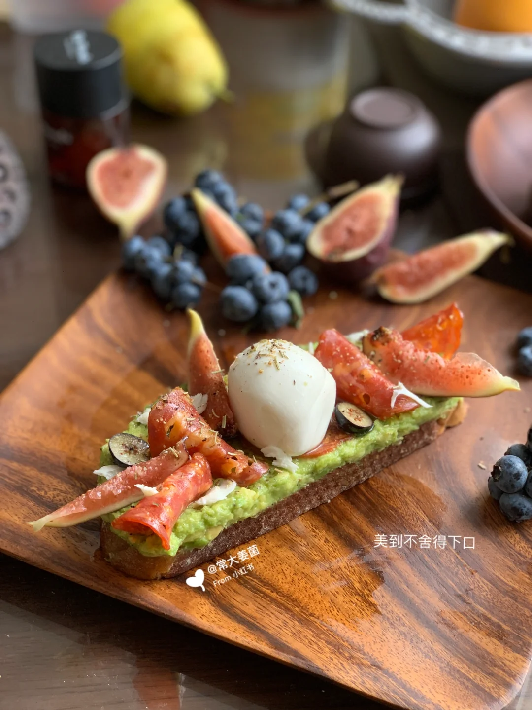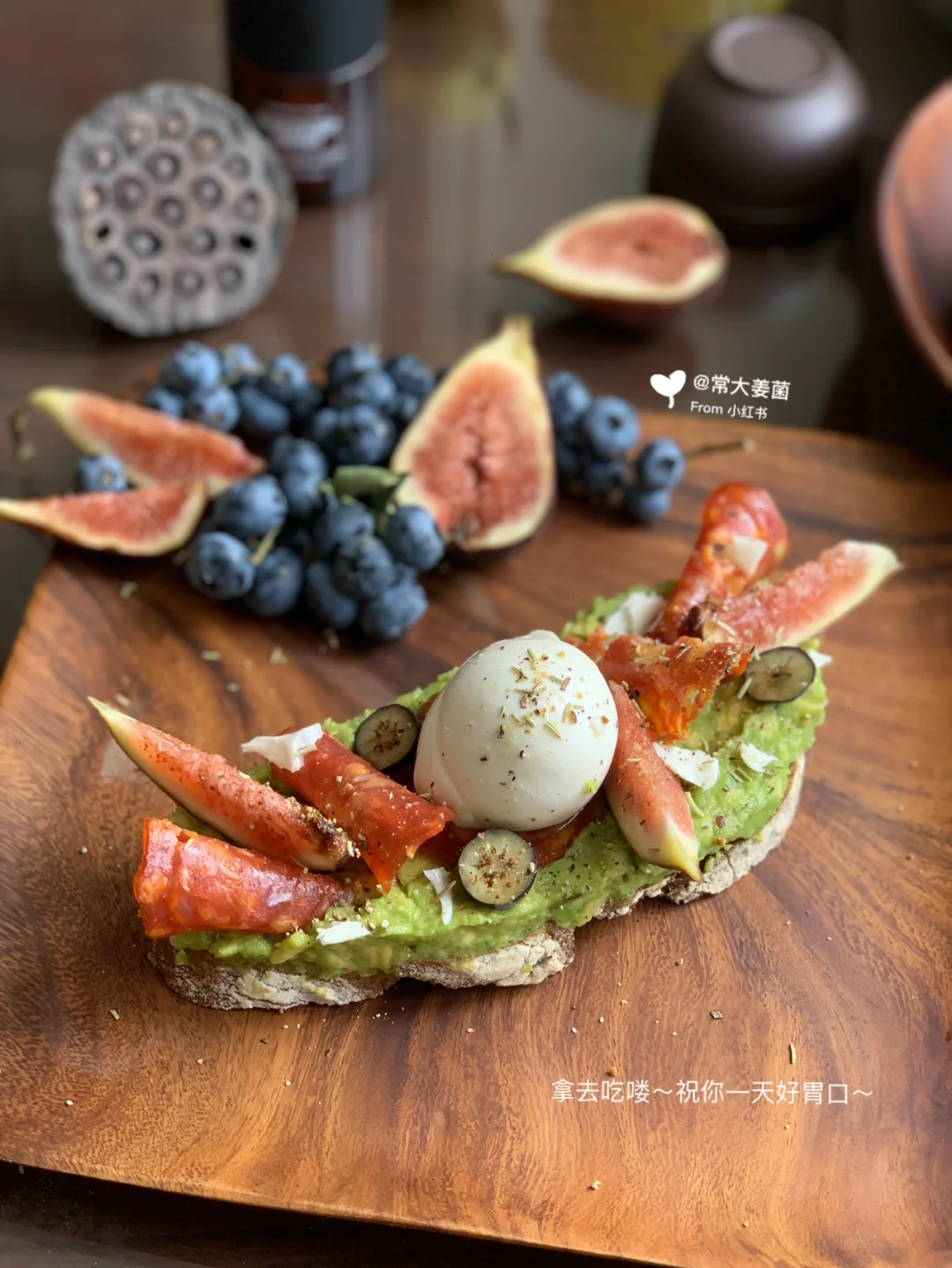 “牛油果奶酪球子无花果萨拉米”开放式酸欧完成~