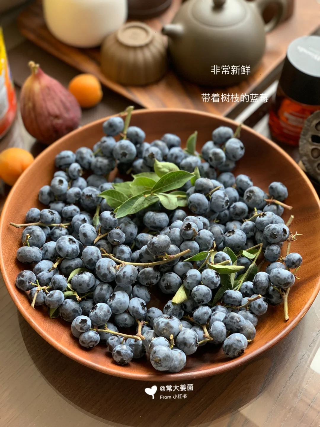 家里有带枝的蓝莓