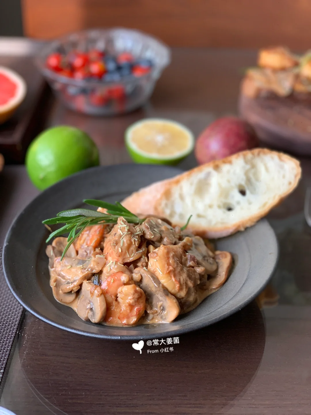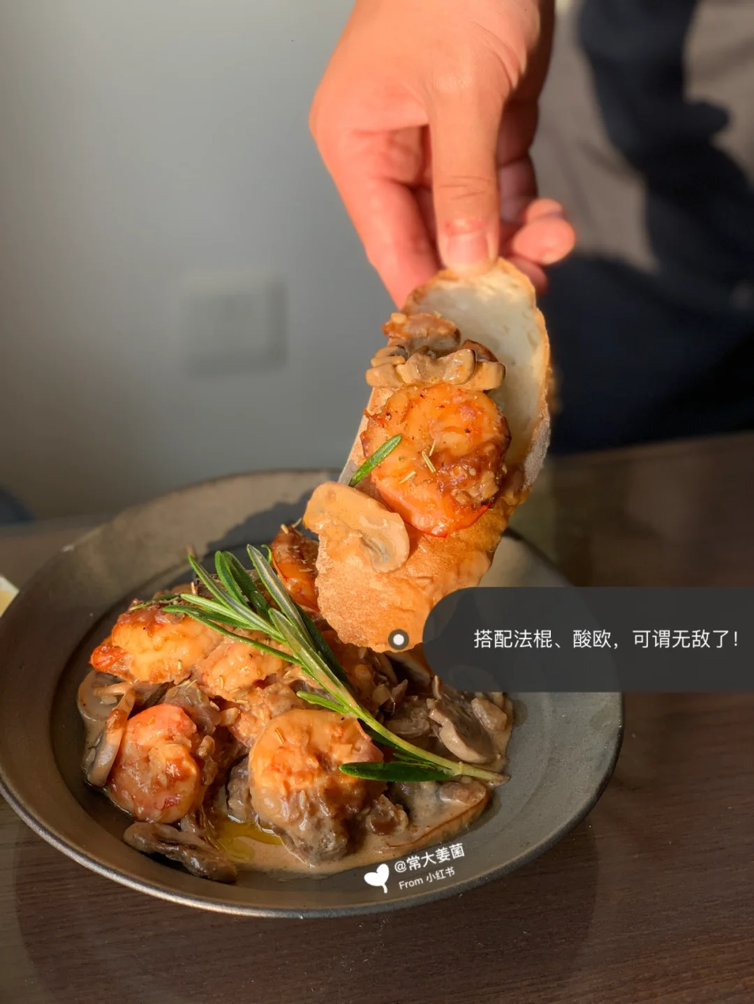 “鲜奶口蘑蒜香奶酪大虾”🦐