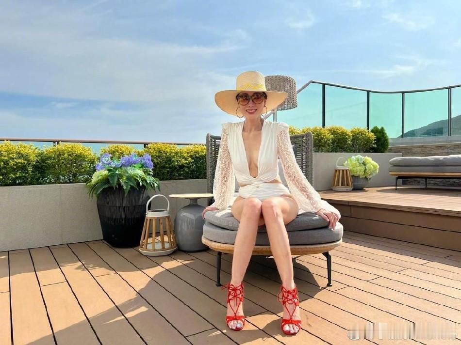 李嘉欣晒夏日写真秀热辣身材,踩红色高跟鞋长腿惹眼
