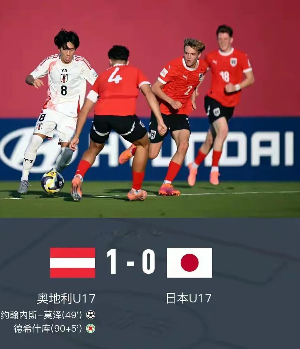亚洲独苗日本止步8强,日本U17队1/4决赛0比1不敌奥地利U17,日本队被淘汰,奥地利U17队进入世界杯4强,日本队12次射门无法破门,奥地利49分钟利用战术角球世界波破门,奥地利还罚丢1个点球,日本足球在亚洲也算一流了,但是面对欧洲球队还是有差距,但是日本U17已经创造了本届世界杯亚洲球队最好成绩了。 另外一场1/4决赛中,意大利U17队1比0布基纳法索U17队,意大利U17进入世界杯4强,看来意大利足球后继有人了,意大利U17半决赛将和奥地利U17争夺一个决赛名额。