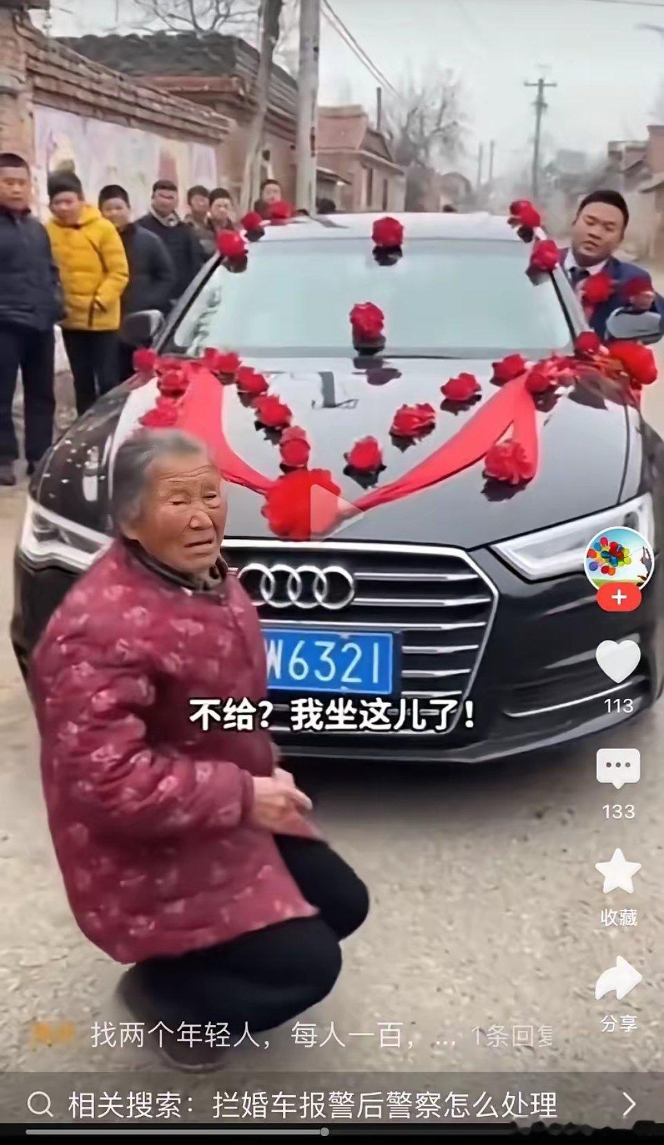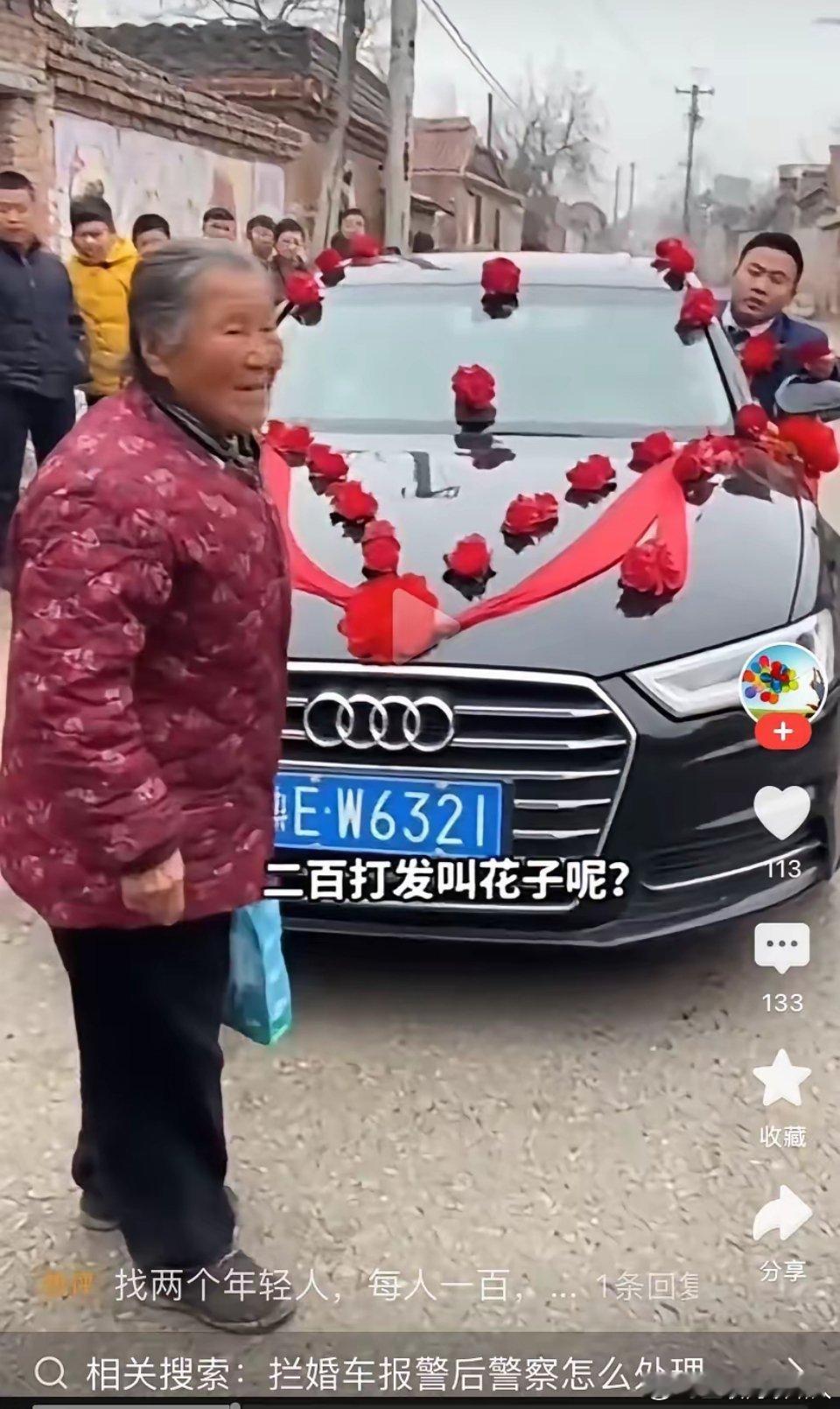 拦婚车老太太张口就要1000块钱红包,新郎家人说给200元红包,老太太怼道:200块钱打发叫花子呢,不给我就坐在婚车前。这样的场景大家觉得怎样?这老人真是白活了,真够给她儿女丢脸的。