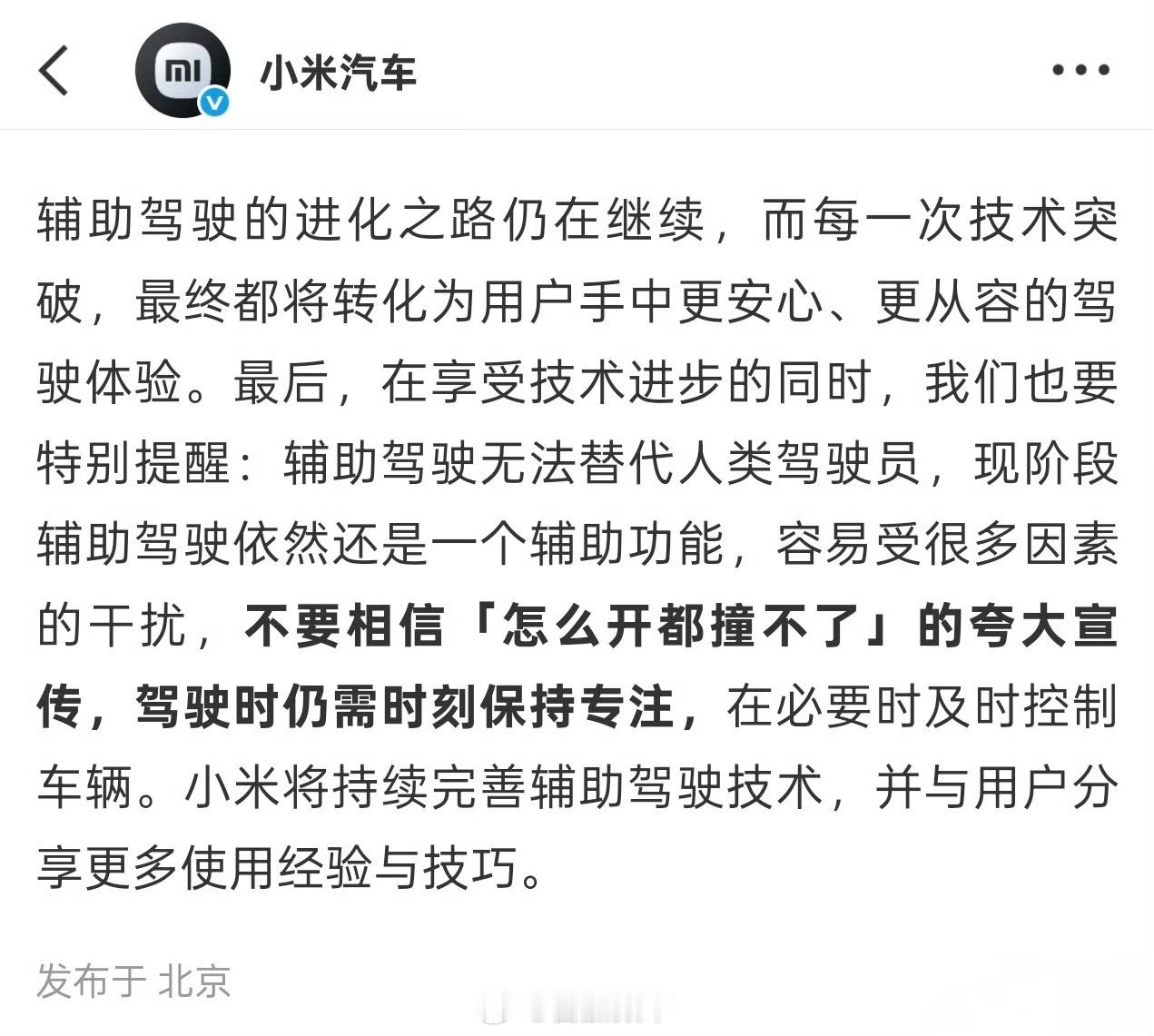 我喜欢小米汽车对于辅助驾驶的态度!旗帜鲜明的反对【想撞都难】……合适吗?合适