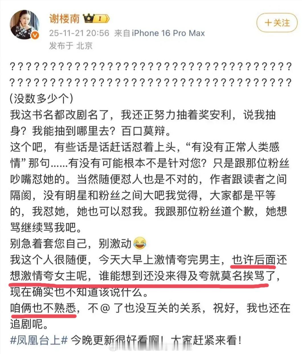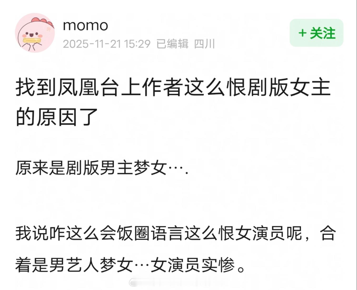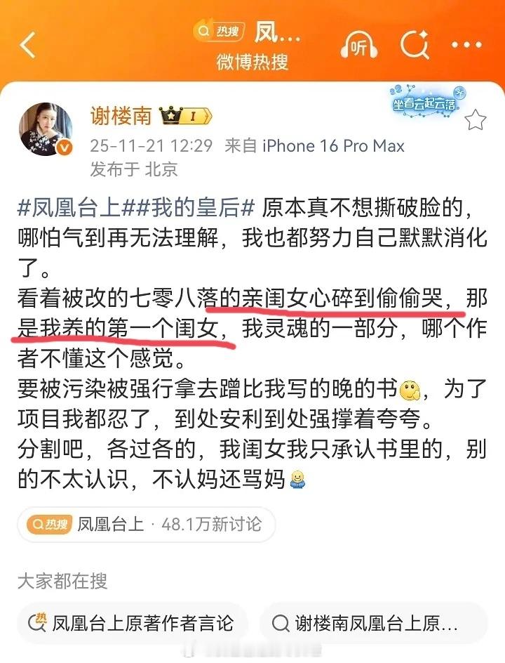 网友说找到《凤凰台上》作者这么恨剧版女主的原因了很多女作者写的其实都是自己的梦女文吧,第一次见原著作者撕女主,怎么好意思说凌苍苍是亲闺女的。。。
