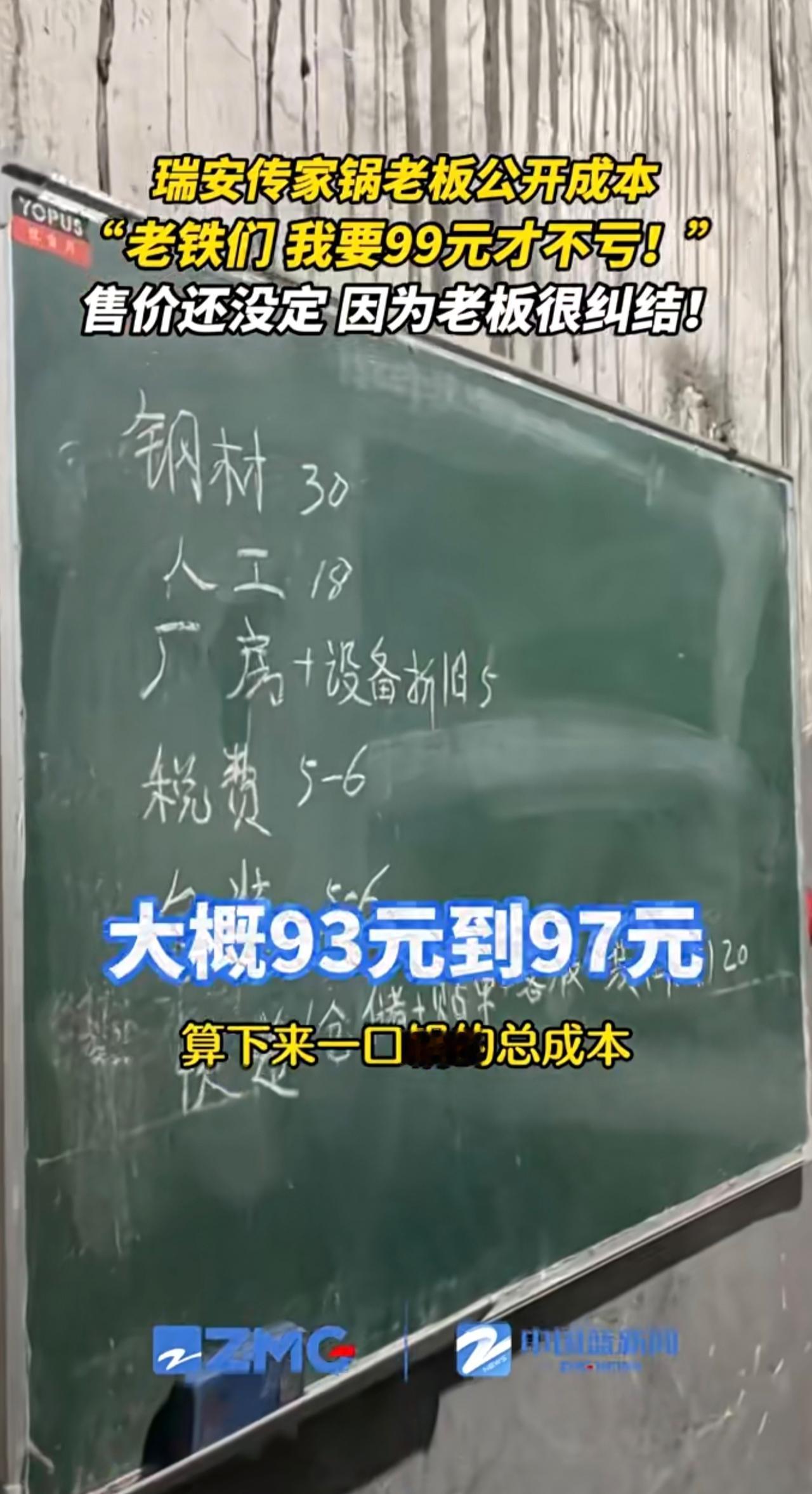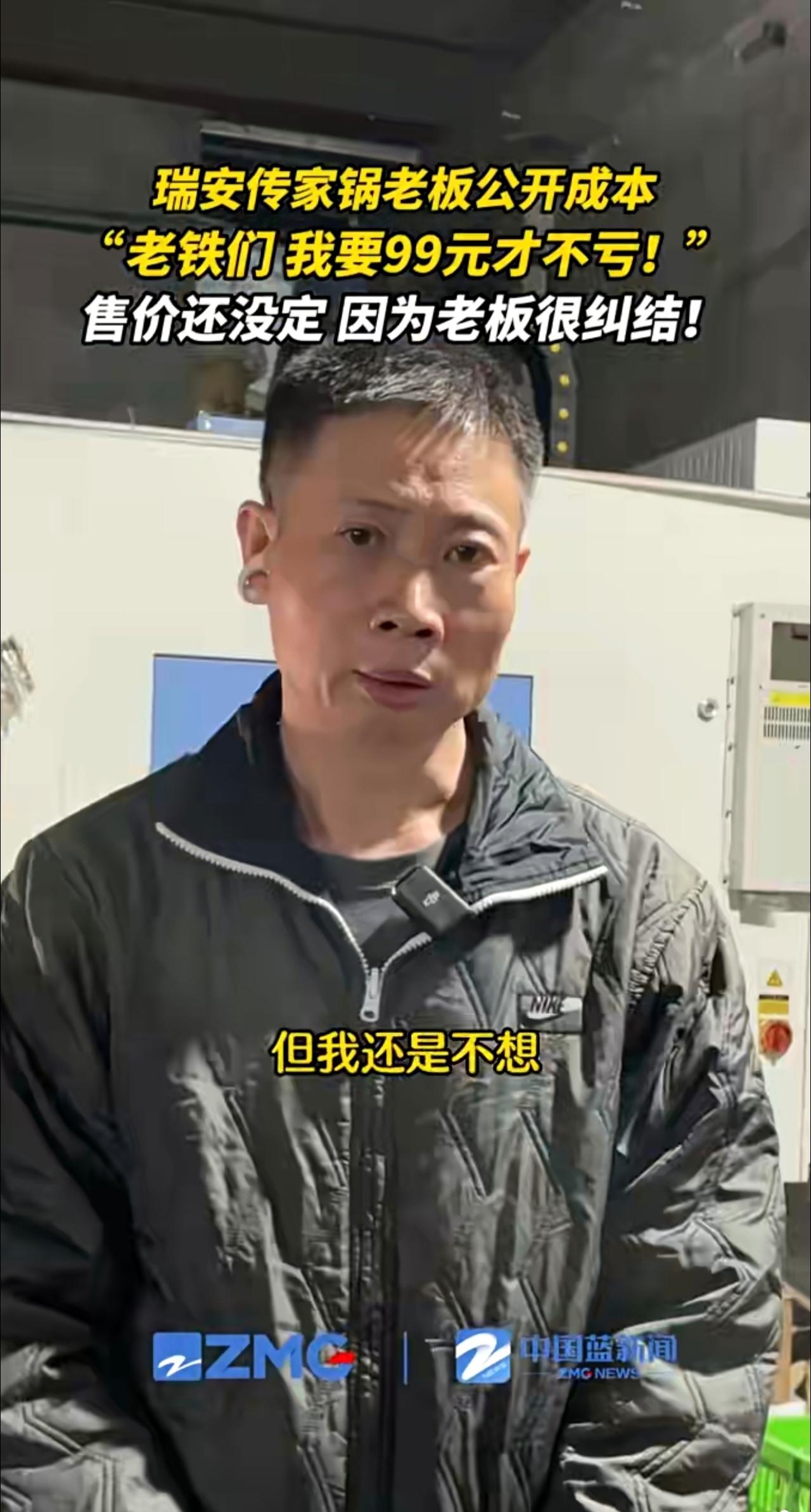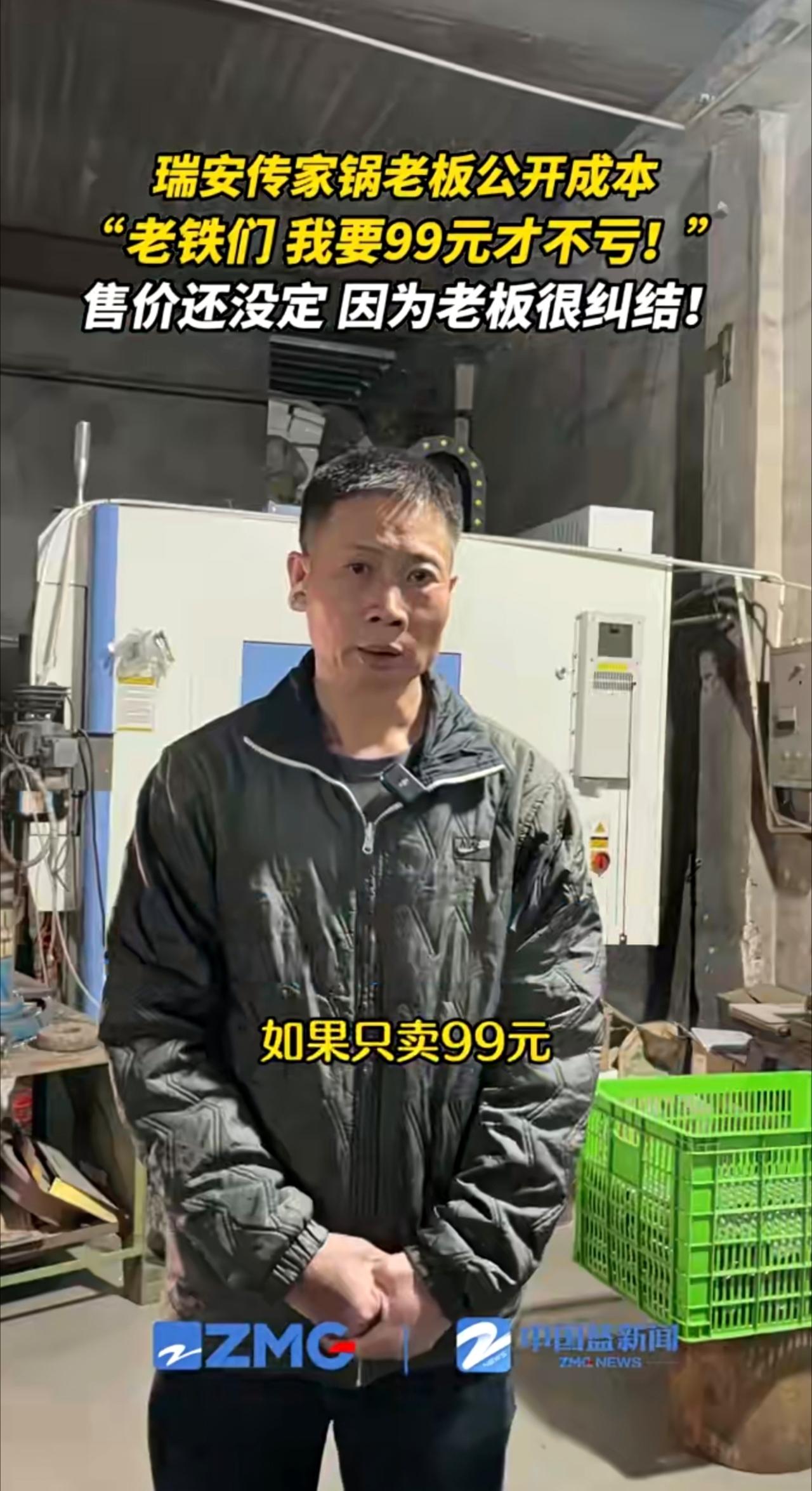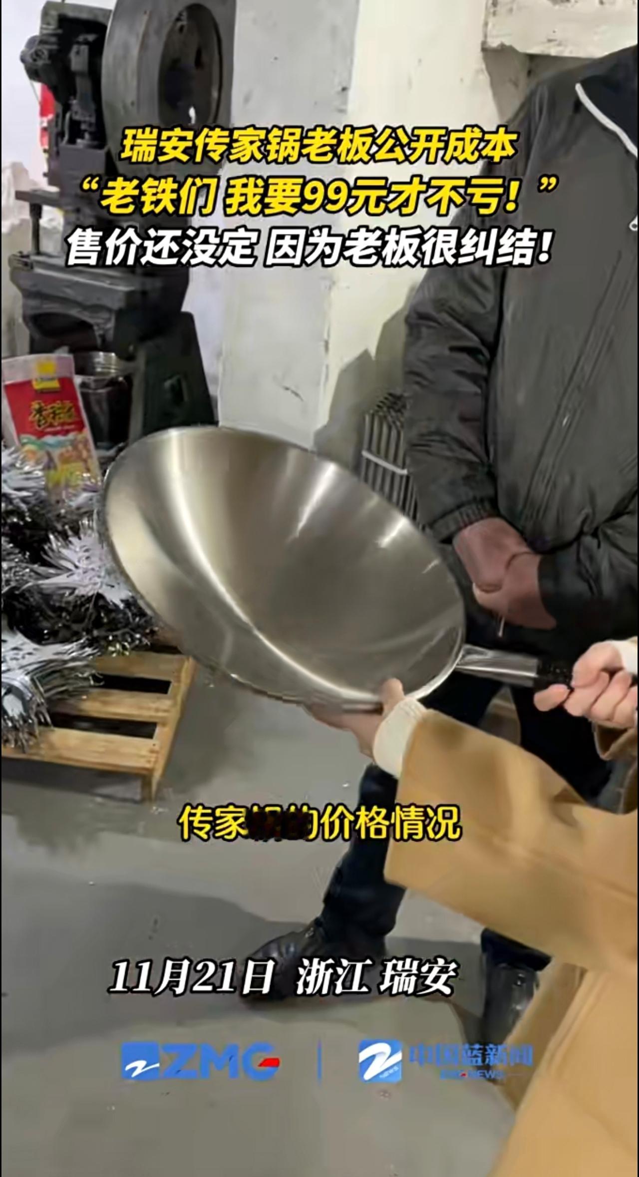 瑞安传家锅老板公开成本:要99元才不亏!到底卖多少啊?高也不行,亏本也不行,老板还在“纠结”。(来源:瑞安融媒)