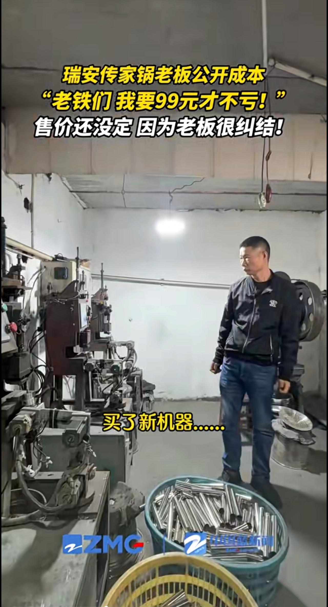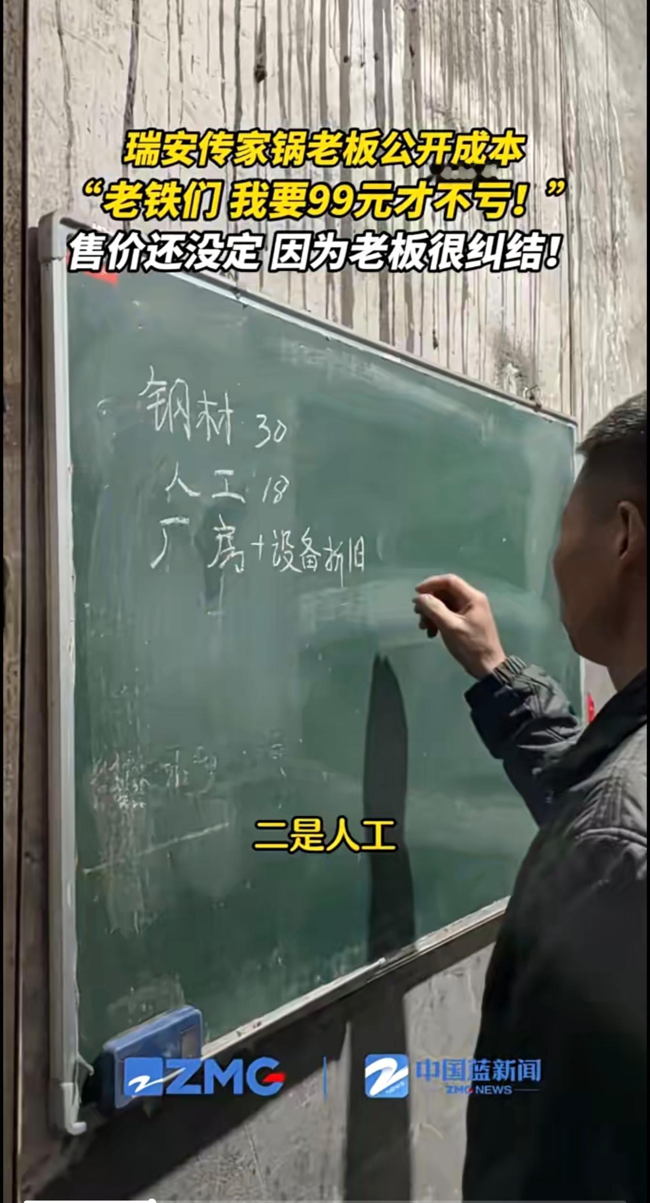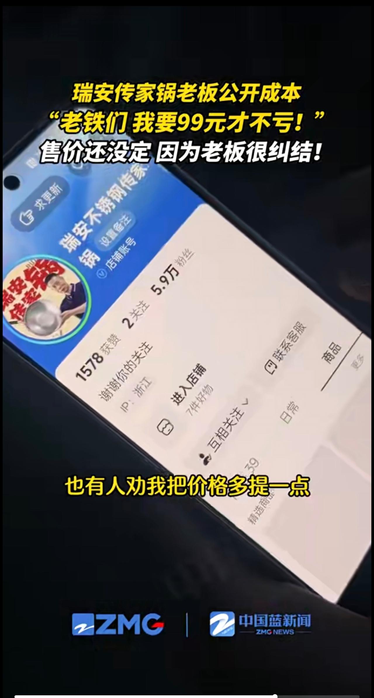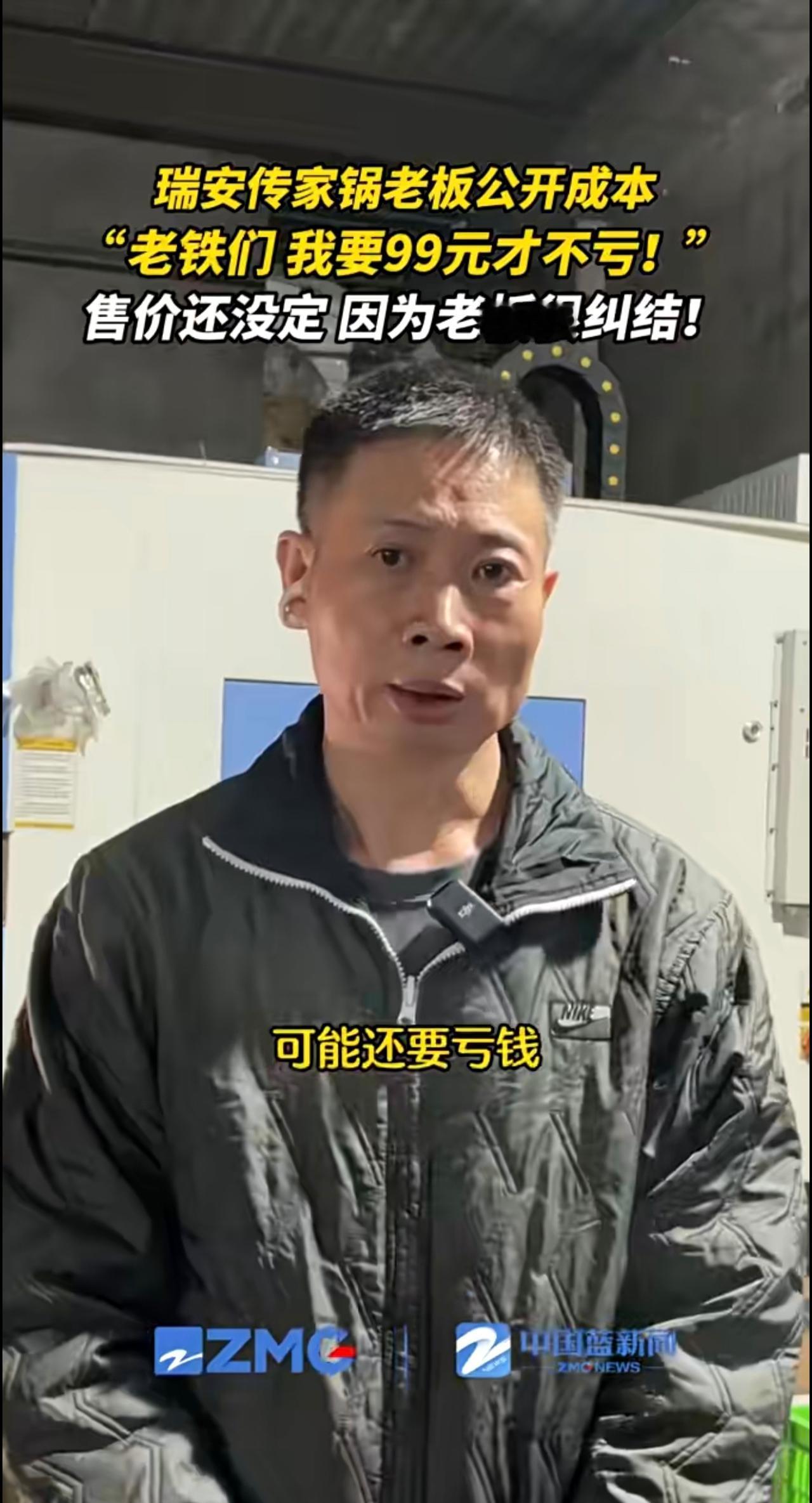 瑞安传家锅老板公开成本:要99元才不亏!到底卖多少啊?高也不行,亏本也不行,老板还在“纠结”。(来源:瑞安融媒)