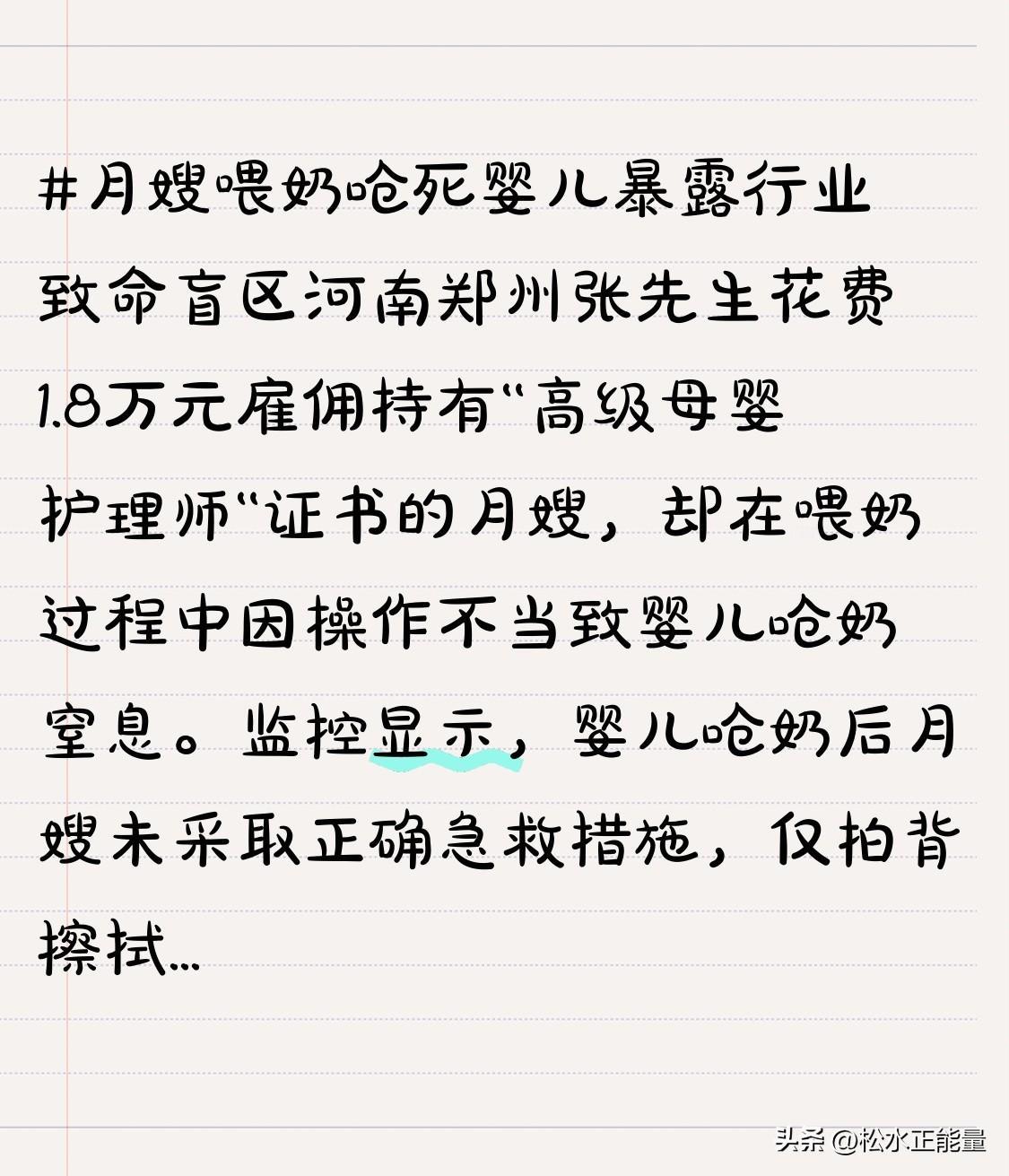 河南郑州张先生花费1.8万元雇佣持有"高级母婴护理师"证书的月嫂,却在喂奶过程中