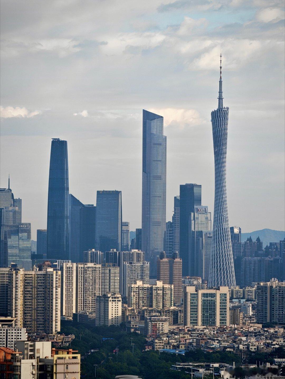 (手指向广州塔)你看我们这个广州塔,这个设计,这个曲线,绝对是顶级的工业美学!像不像一款精心打磨的旗舰产品?腰身收得多优雅,这种极简流线型设计,投入肯定是天文数字,但效果是真的值!(环顾四周建筑群)周围的楼群也很厉害,高密度、高性能,就像一套完美的生态系统——有负责算力的方正大楼,有展现设计感的锐利造型,共同跑出了广州这座超大城市的高效“系统调度”。这天际线,妥妥的“为发烧而生”!(放大画面细节)前景这片绿地和低矮建筑也很关键,就像产品的“呼吸感”,让整个画面有了生活温度。多云天气的光线特别柔和,这蓝灰色调啊,自带一种沉稳的商务高级感,比那些过饱和的滤镜强太多了!(总结式点头)这张图啊,拍出了广州的硬核实力和人文气息的完美平衡。一句话总结:颜值能打,体验流畅,广州这座城市,绝对是国际大都市里的“性能旗舰”!大家说,是不是?
