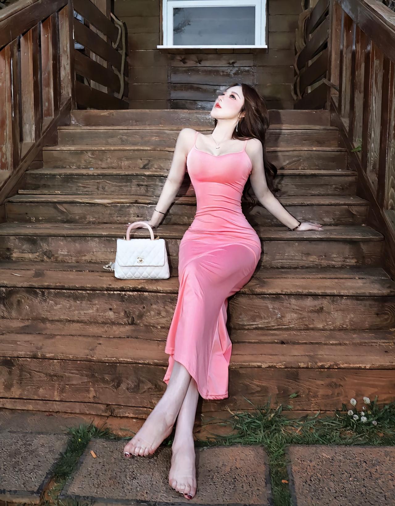 想象一下,在夜晚静谧的森林里,有一座散发着温暖灯光的木屋。一位身着优雅粉色吊带长裙的女子站在木屋前,长裙轻盈飘逸,像一朵灵动的粉花。 裙摆随风舞动,搭配上白色厚底靴,柔美中又透着个性。她在木屋周围漫步,雕花木门、彩色瓷砖与她相互映衬,浪漫氛围直接拉满。 要是在这里拍照,不管是半坐在木台上歪头看镜头,还是手持饮料惬意地坐着,亦或是拿着草帽望向远处,每一帧都充满了惬意慵懒的感觉,仿佛电影里的唯美场景。 温柔风吊带长裙 木屋秋景