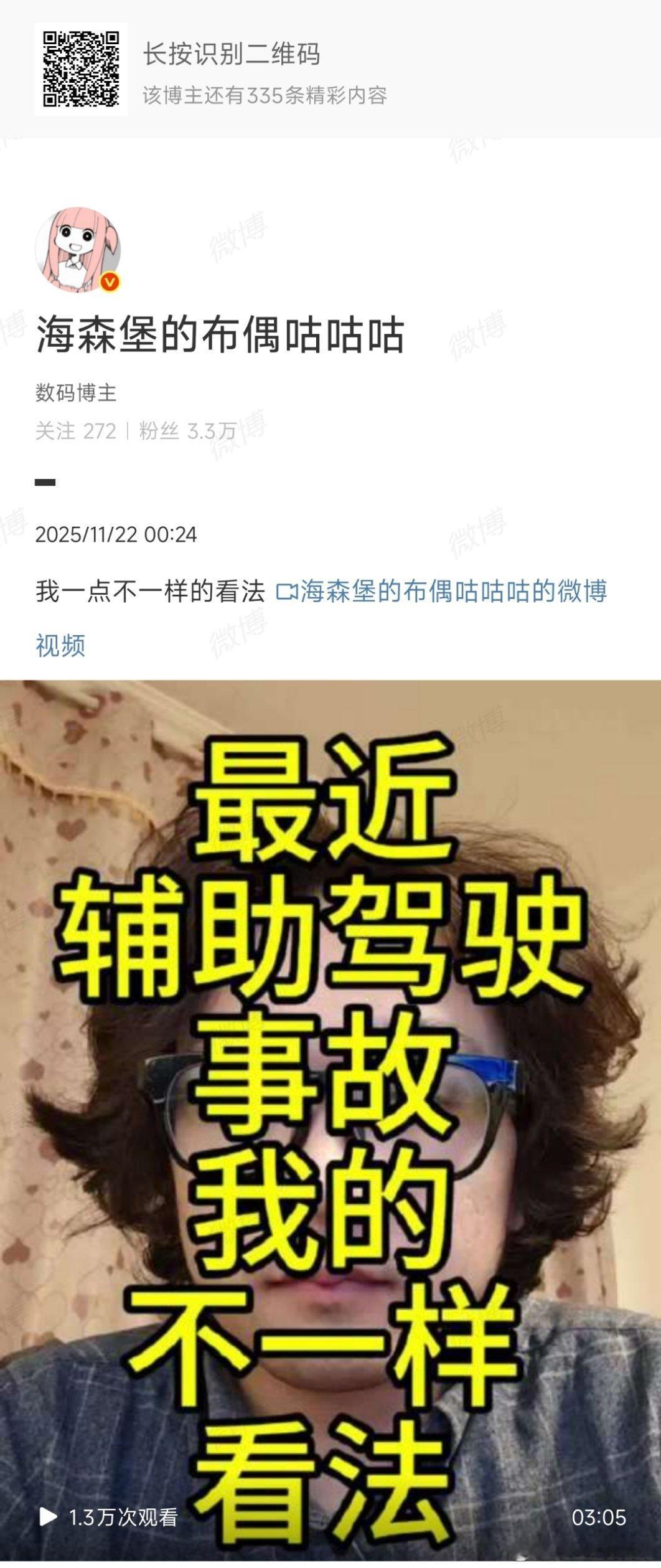 关于NCA撞人事故,我看了视频,但不完全赞同L2状态下,驾驶员承担全部责任。但车企要对驾驶员的责任负次要责任因为辅助驾驶法规要求辅助驾驶系统必须确认驾驶员的在环状态,而不是放任驾驶员睡觉、玩手机、看视频。人都是爱偷懒的,所以辅助驾驶才需要各种检测手段,强迫爱偷懒的驾驶员时刻保持对车辆、路况的掌控。这次事故,明显驾驶员是没有注意路面状态,而且必然持续时间不短,才会看不到行人。在这过程中,DMS都没有发出提醒,升级提醒,直至退出辅助驾驶功能。这就说明车企的DMS策略不够认真,我相信以辅助驾驶供应商的能力,DMS软件肯定能做得很好,最终是车企在明知用户可能滥用的情况下,故意不收紧权限,故意留下漏洞让驾驶员走神、睡觉、玩手机、看视频。这是不可推卸的责任,车企必须承担当然,驾驶员要对自己的责任承担主要责任综上,本次事故责任我觉得如下分配比较合理:驾驶员:7车企:3额外车企应该升级其DMS功能,强制对驾驶员视线进行检测,确认驾驶员状态才可以开启辅助驾驶功能。这个要求也是新国标的要求