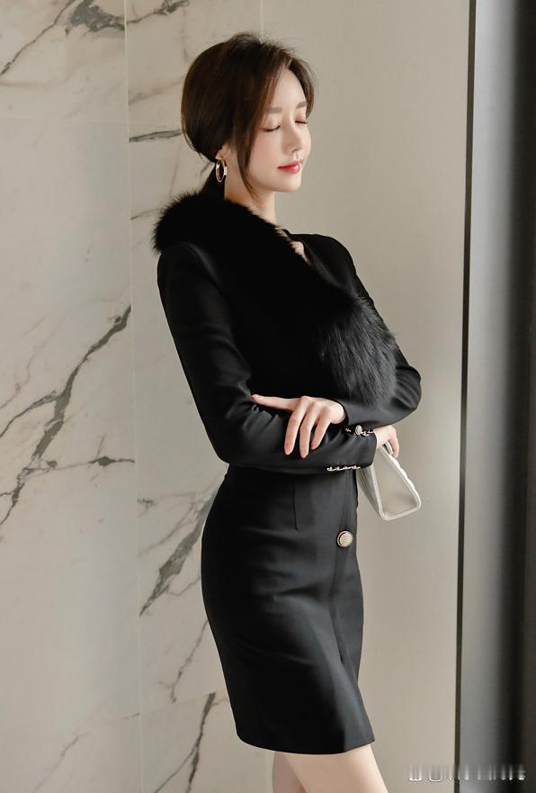 孙允珠,一袭凝墨高冷王妃貂皮单肩职业裙霸气亮相,把“冷艳女总裁”与“王室王