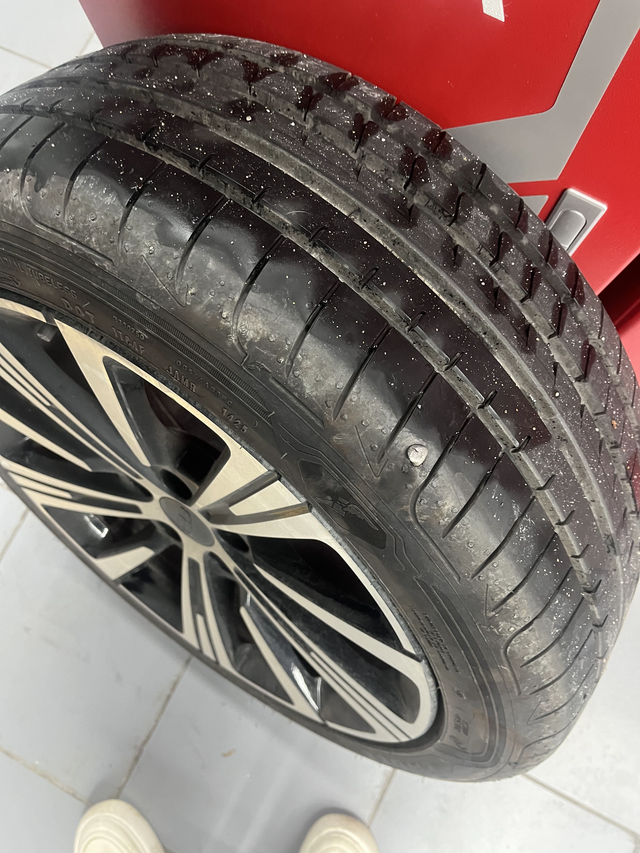 头一回换轮胎,选了个皮实耐造的。原厂马牌的价格能买俩,顺便把之前马路牙子磕碰的轮