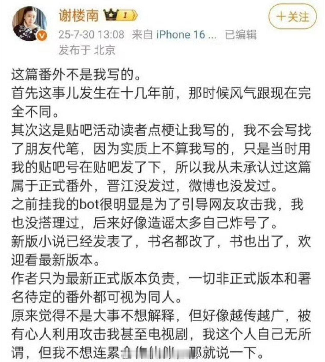 我不行了 吃瓜发现凤凰台上这个作者谢楼南槽点真的太好下口了1.bg小说但接了bl点梗2.但是自己不会写遂请朋友代笔 还用自己的号发(发了还说自己不承认是番外)3.虽然是她自己的号发的 但是自己不负责 只能算是同人如果你不接受你觉得不恰当为什么要接受这个点梗啊?你都不会写为什么还要找朋友帮忙写啊?你都不认同为什么还要用自己的号发啊?