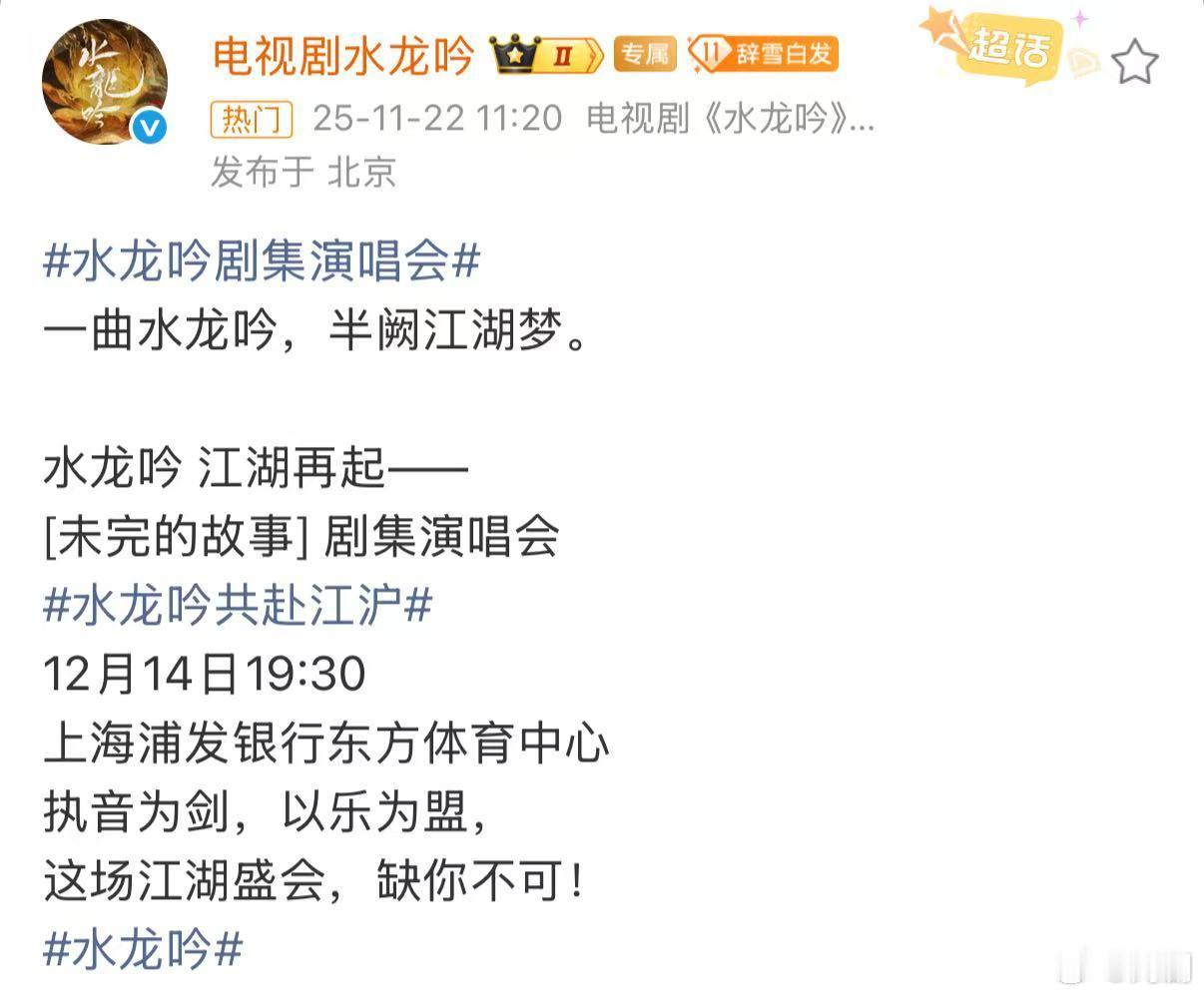 刷到《水龙吟》要开演唱会的消息,顺手打个卡。阵容歌单啥都不知道,但先期待一波总没错吧?坐等官博揭晓答案。