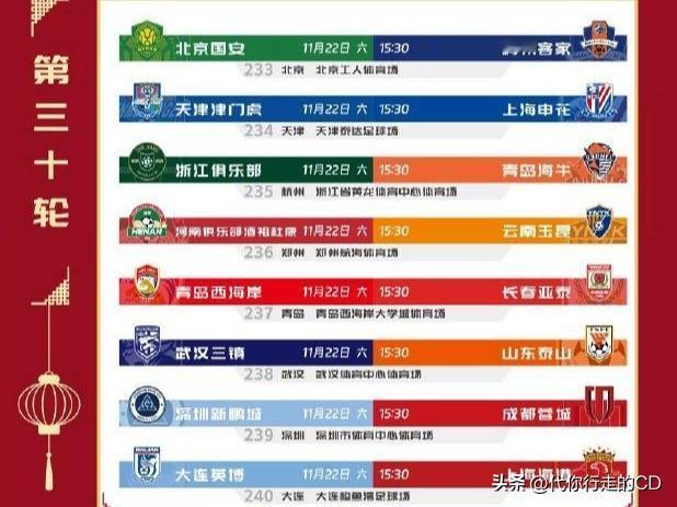 徽超、苏超、中超~若同时放在面前,我还是会选中超! 15:30,中超最后一轮8场比赛将同时开赛。上海上港和上海申花的冠军争夺,青岛海牛和梅州客家的保级缠斗,都将揭晓答案。不管是在比赛现场,还是在屏幕前,都让我们拭目以待! 中超 中超冠军谁说了算