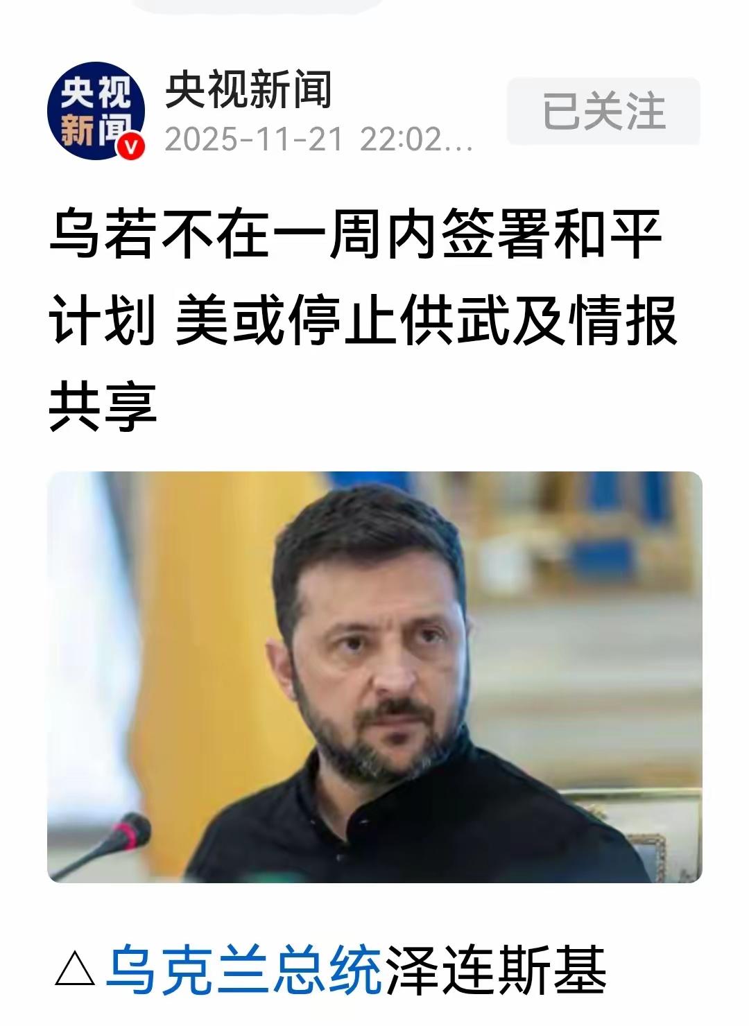 美国逼迫泽连斯基签署“丧权辱国”的和平协议,俄罗斯前线接连攻占乌克兰战略要地。前后夹击的泽连斯基面临抉择。 央视报道,美国几乎是给泽连斯基下发最后通牒,乌克兰如果不在一周内签署和平协议,美国将停止武器供应和情报共享。这个协议应该是指的割让领土、去军事化、不准加入北约的“不平等条约”。昨天泽连斯基发表讲话,说面临最艰难的选择,甚至说是钢铁,这个时候也会断裂。意思是只能选择失败。 网友:2022 年 3 月俄乌冲突爆发初期。在土耳其的斡旋下,俄乌双方在伊斯坦布尔举行多轮谈判,并于 3 月 29 日初步达成一份涉及停火、安全保障及战后安排的协议草案。该草案被俄方称为 "俄乌最接近成功的谈判成果"。然而,随着时任英国首相约翰逊访问基辅并传达西方国家的立场 "继续战斗" 的立场,乌方最终放弃签署协议,谈判进程中断。 我们要做好后俄乌战争准备,美国是急于抽身来对付我们,俄罗斯在受到美国恩惠后,对我们必然不是从前了! 乌克兰不是怕不给武器,是泽连斯基怕美国查他贪污,所以要加一条不追究战时任何贪污行为。 泽连斯基确实很难,因为在自己国家打仗都是为北约,所以他跟北约要武器可不是死乞白咧,而是理直气壮。就这,美国一不承认,就得让乌克兰把国家资源抵给美国犹太资本,以偿还武器钱,窝火不。把国家一代人都都打没了,可一帮子北约国家口是心非,不好好供武器,窝火不。最后还得让步于美国与俄罗斯的利益交换,被迫割地签署和平协议,窝火不。