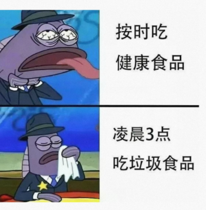 按时吃健康食品vs凌晨3点吃垃圾食品