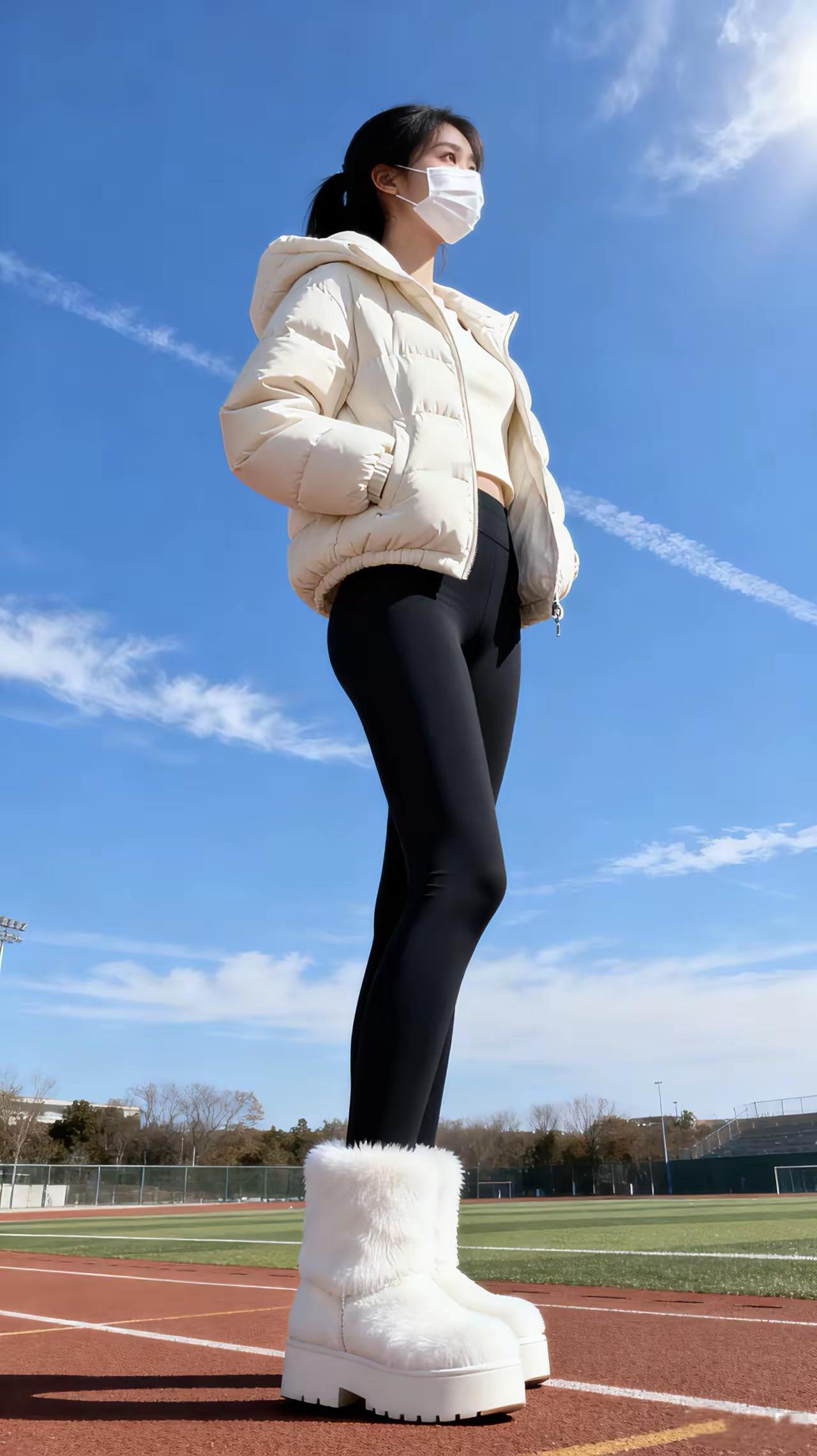 冬日暖阳下的红色连衣裙,与雪景相映成趣,优雅又温暖。