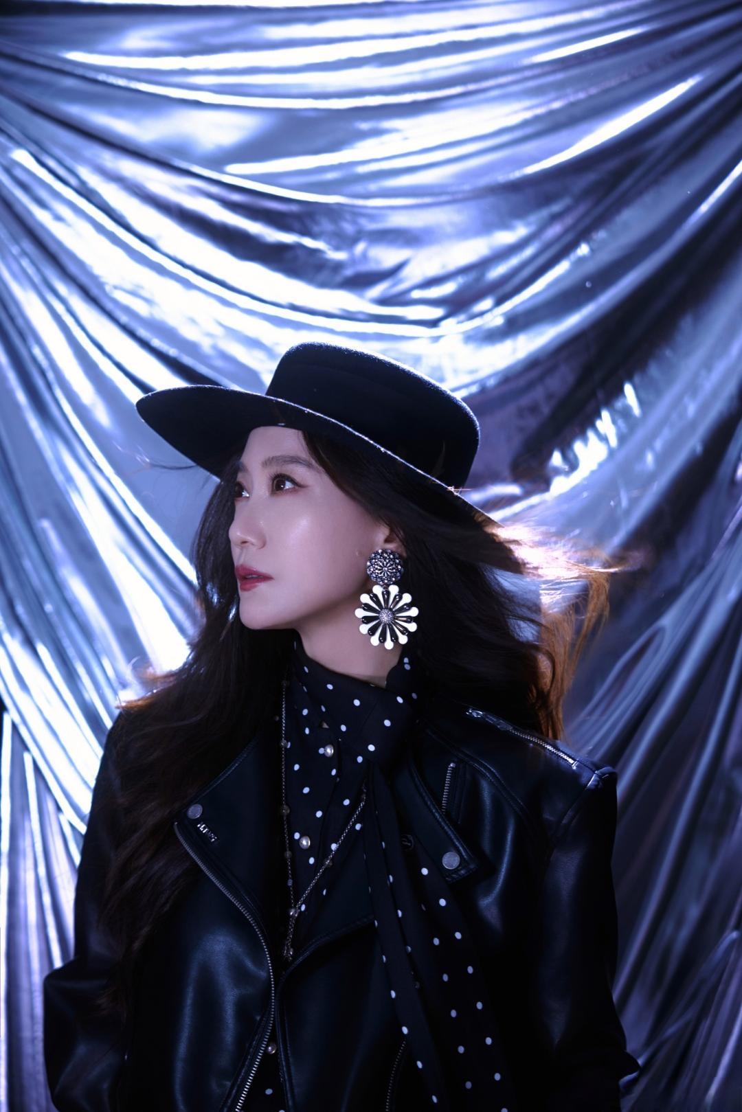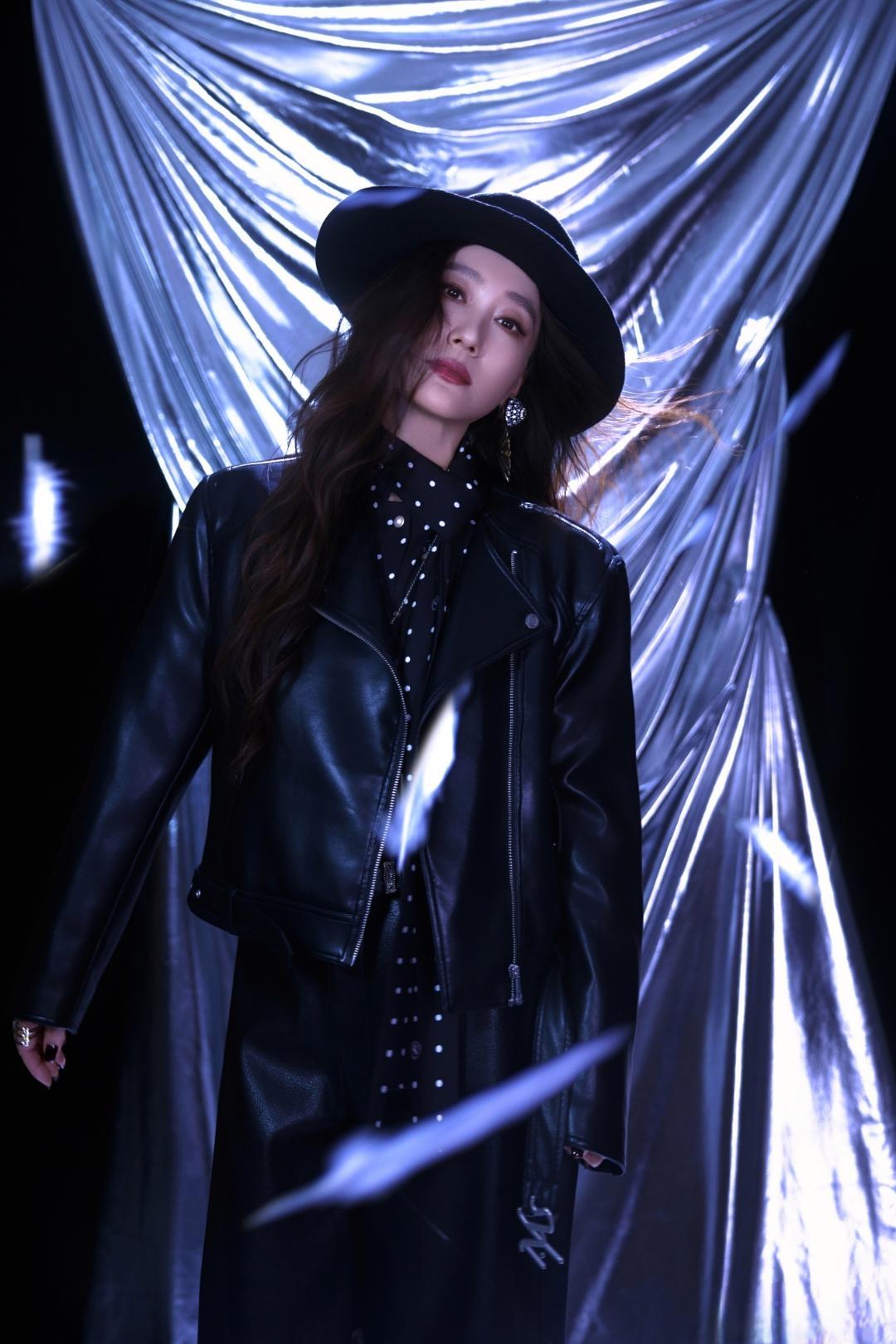 谭晶舞台上的全黑皮衣套装自带气场——亮面皮质裹出利落线条,内搭波点丝巾又添了丝复古慵懒,宽檐黑帽一压,低头吟唱时的氛围感直接拉满;抬手微笑的瞬间,又把飒爽和明媚揉在了一起,反差感直接戳中审美
