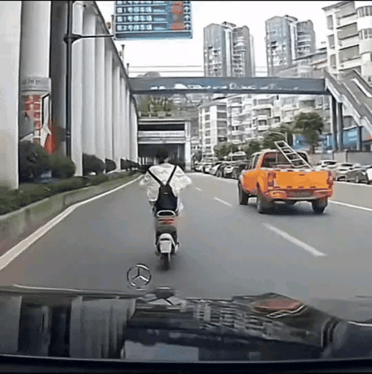 为什么非机动车不要上机动车道,这就是原因。到底是谁给她的勇气,梁静茹吗?