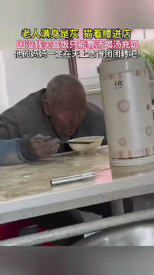 傍晚的小饭馆里飘着饭菜的香气,满身是灰的老人猫着腰推门进来,旧外套上还沾着没拍干净的土。他在桌边局促地站了好一会儿,才小声问老板能不能给碗汤——说自己没带够买盒饭的钱。 白瓷碗里的热汤端到面前时,他攥着勺子的手轻轻发着抖,埋下头小口小口地喝着,像是要把碗里的热气都吸进身体里。看着他这样,让人忍不住鼻头一酸:他的妈妈一定在天上急得团团转吧。生活 日常分享