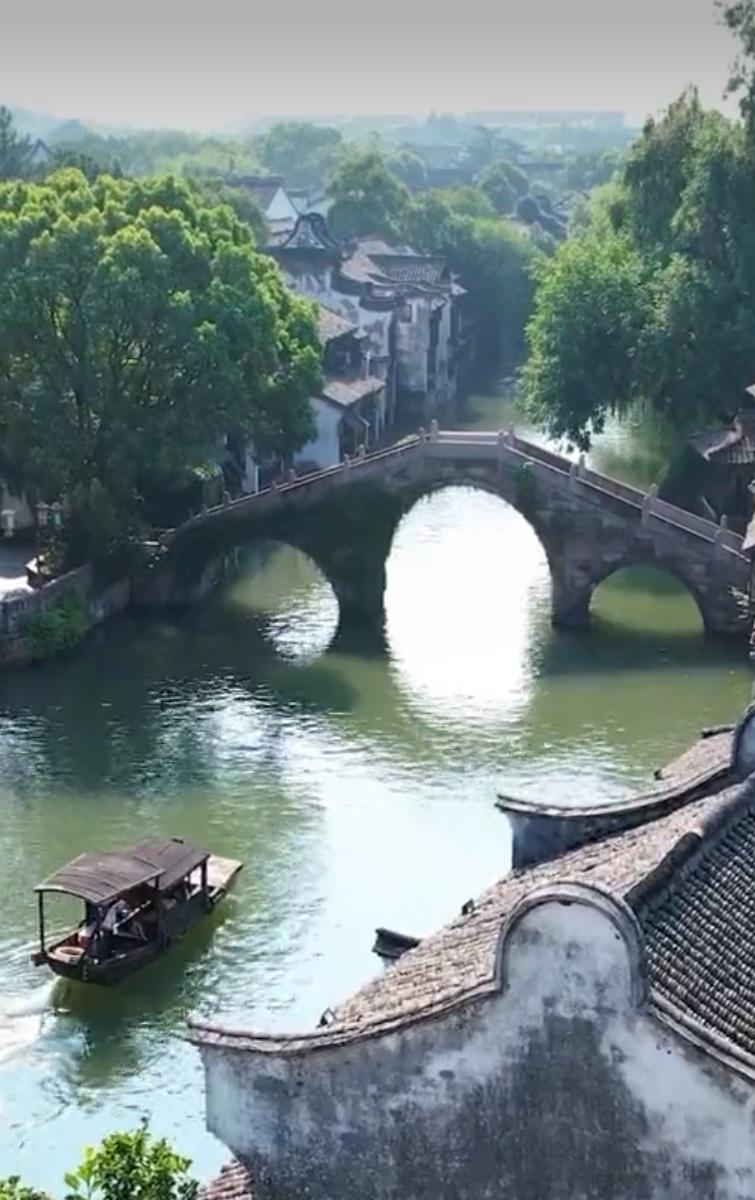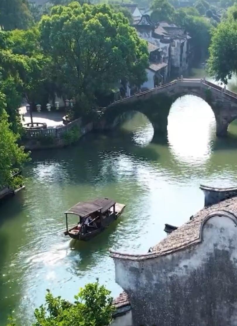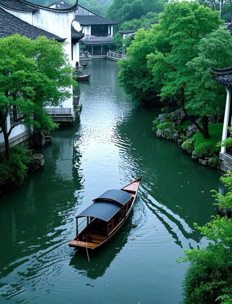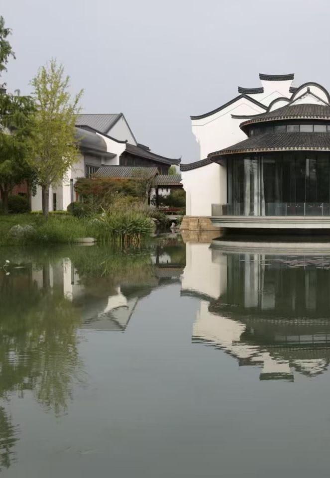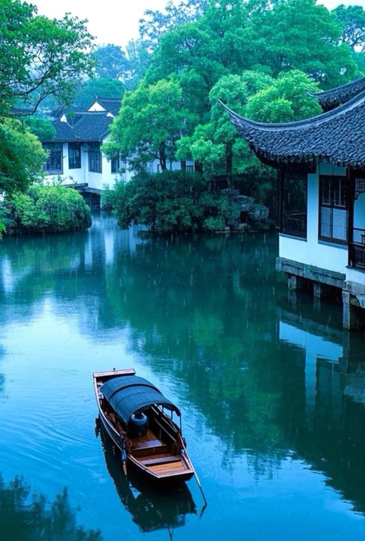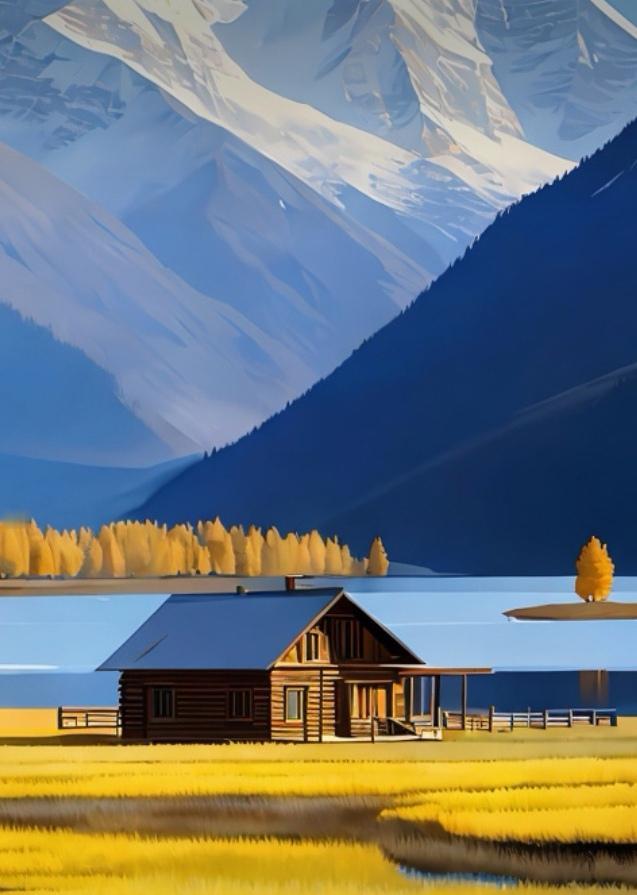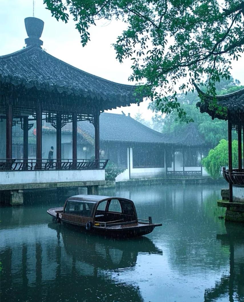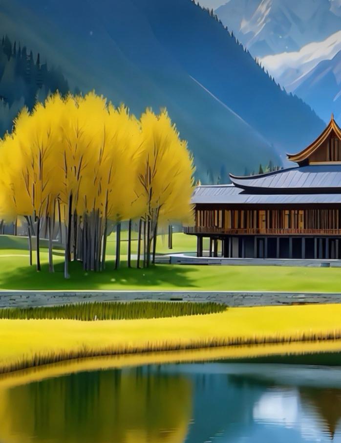 小屋依山傍水边, 云影天光共缠绵。 清风拂面心神爽, 此景此情胜桃源。