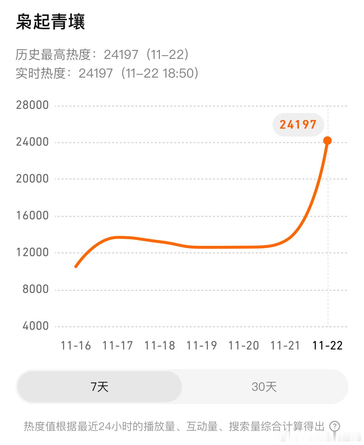 迪丽热巴、陈星旭破23000也就半小时…… 实时24197一小时不到热度涨5100+……很猛了❗️小目标先到26000(爱看俱乐部)大目标28000(降看俱乐部)