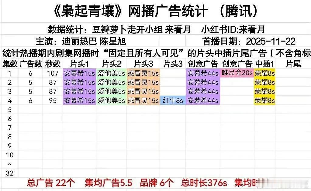 迪丽热巴陈星旭枭起青壤开局6广,看来广告商前期并不看好,后面会打脸吗?