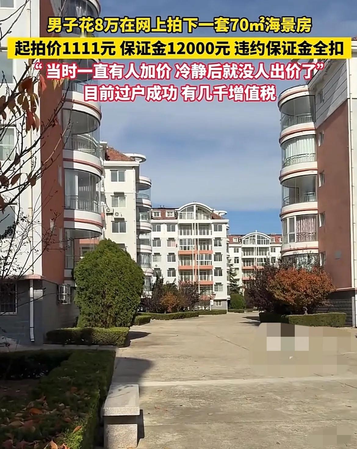 这胆量也没谁了! 河南一男子,居然敢花8万多, 从网上拍到一套海景房 位置在乳山,去一趟要跑900公里,网友认为他砸手里了! 据该男子的爱人称,这套房子拍卖过程中挺蹊跷的,男子加价,有几个账号也加价,加到7万多,男子不想加了,结果他一停下了,其他账号也停下了,男子只好买下。 网友们都猜,那些加价的大概率是电脑控的“托儿”,说白了就是为了把价格抬上去,估计全程就大哥一个真人在竞拍。 咱先不说拍卖的事儿,乳山这些海景房早就不是什么香饽饽了。当地人都知道,这房子冬天没暖气冻得发抖。 夏天潮湿得能拧出水,也就偶尔来度个假还行,一年住不了十天半月,周边配套更是一言难尽,想租出去都没人要。 想起十几年前,我们这儿的海景房也火过,北京炒房团一出手就是一个单元,现在倒好,全成了没人要的“空城”。 早出手的还能保本,现在就算降价甩卖,都得看运气能不能碰到冤大头。 不过换个角度想,既然买都买了,大哥一家夏天总算有地方度假了,乳山银滩的沙子是真细腻,海水也干净。 但话说回来,这8万花得值不值,关键还是看家里有没有闲钱。要是单纯想投资,那大概率是要后悔的;但如果就是图个自己开心,偶尔去海边放松一下,好像也不算亏。 你们觉得大哥这波操作是捡漏还是踩坑?如果是你,会花8万买一套远在900公里外的海景房吗?