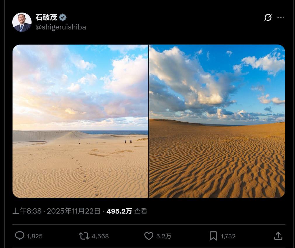 石破茂今天的帖子没看懂,不知道一望无垠的沙漠代表着什么,也不知道在沙漠里面步履艰