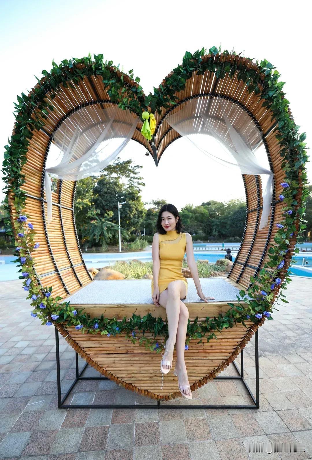 在心形的竹艺装置前,感受爱的氛围💚✨