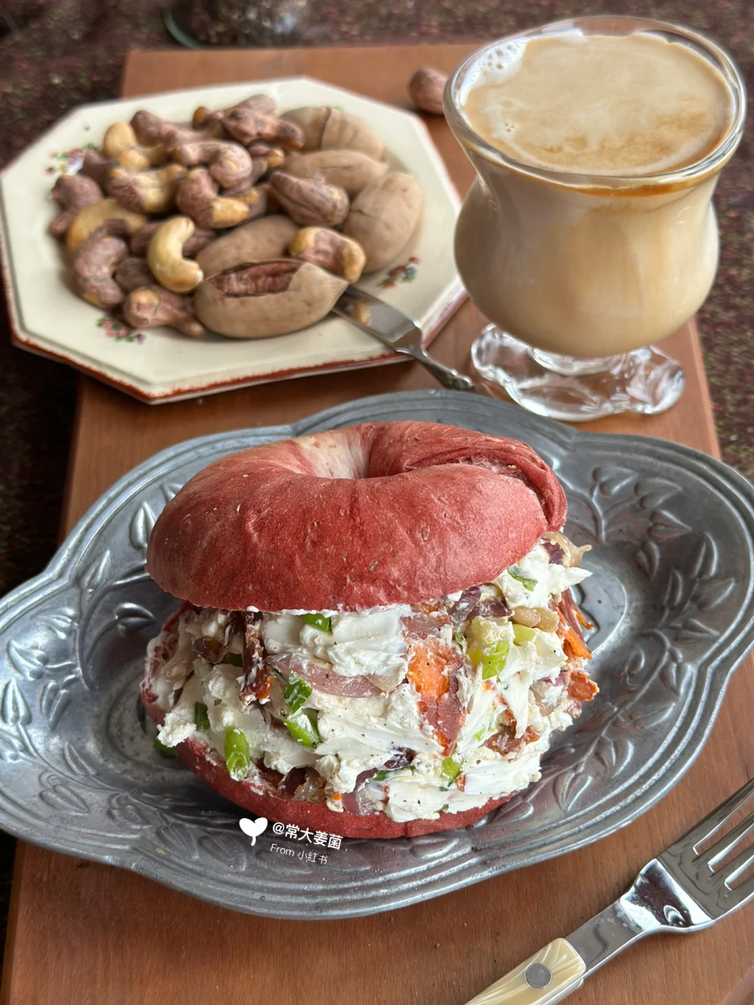 🤩🤤🤤🤤焦糖洋葱涂抹奶酪🧀🥯贝果三明治