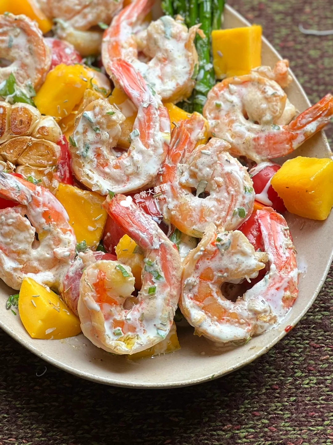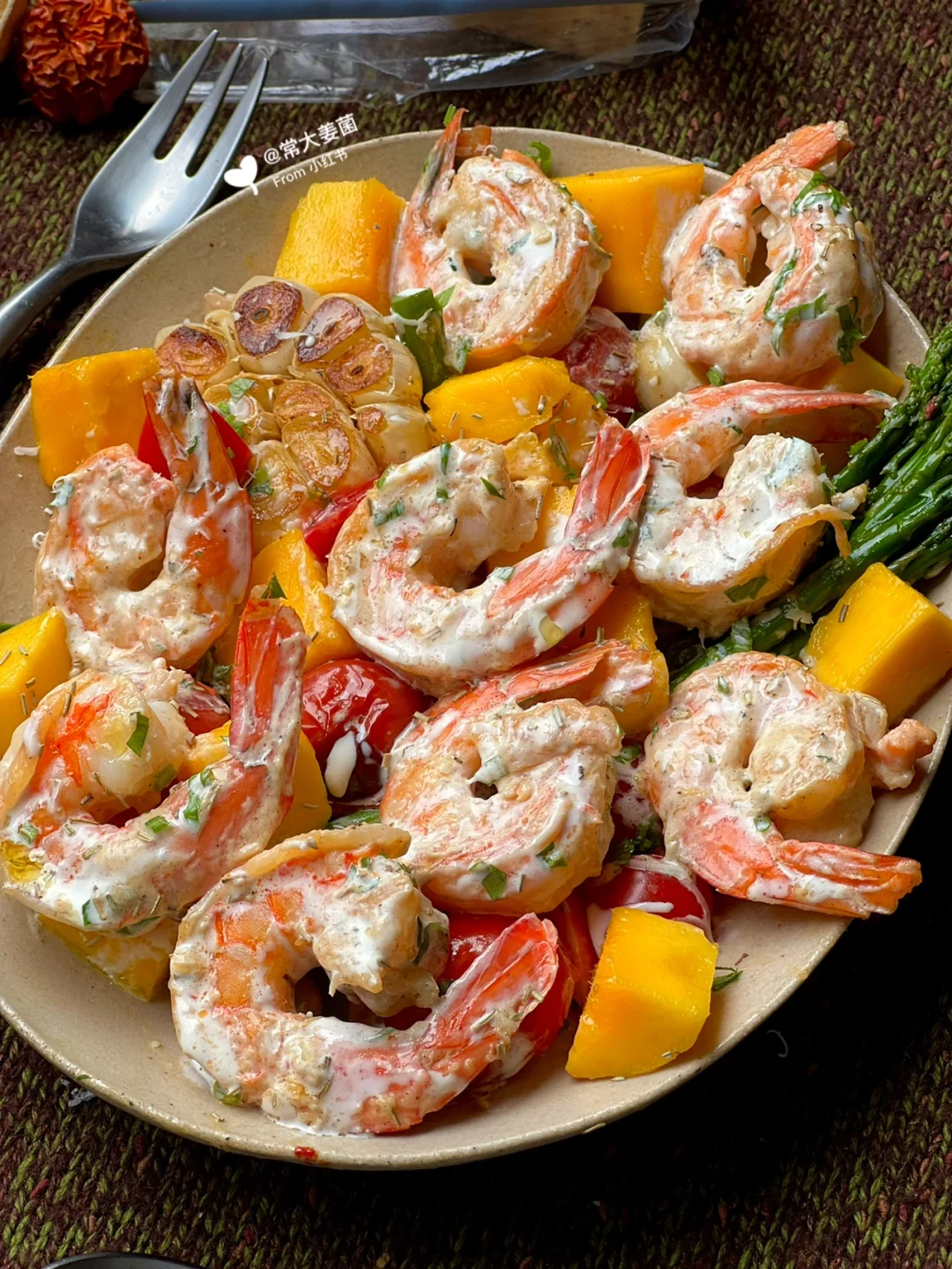 西班牙奶油蒜香大虾&芒果🧄🥭🍤🇪🇸好吃哇!