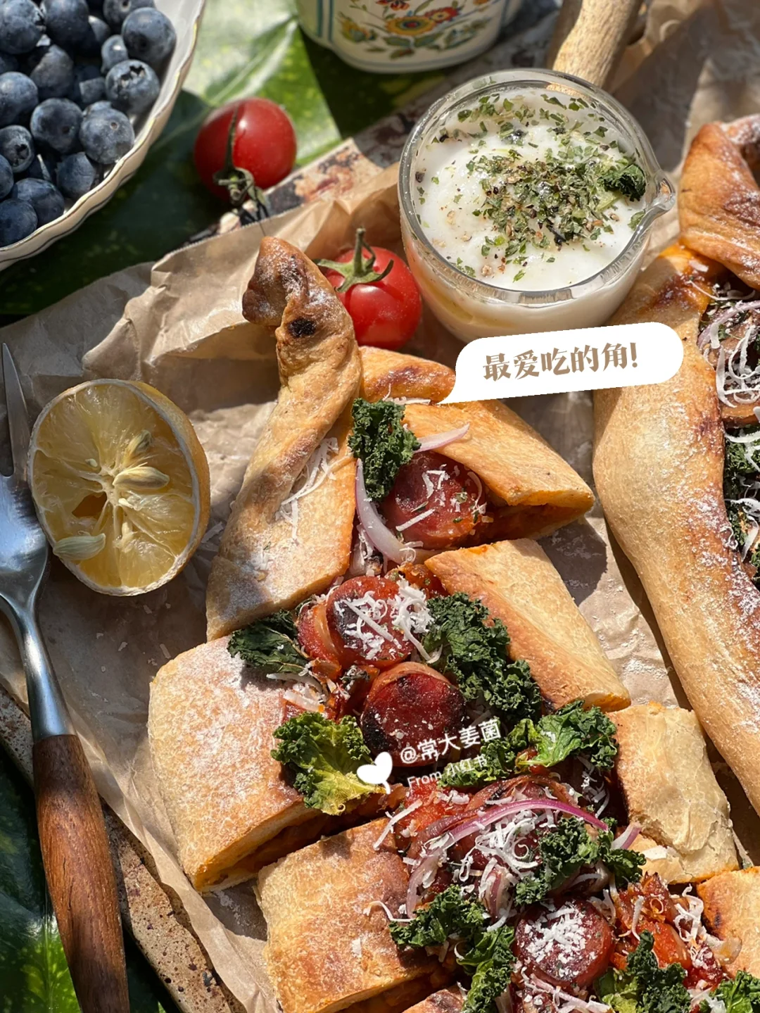 (这次我做了两个味:一个口蘑一个香肠子~)