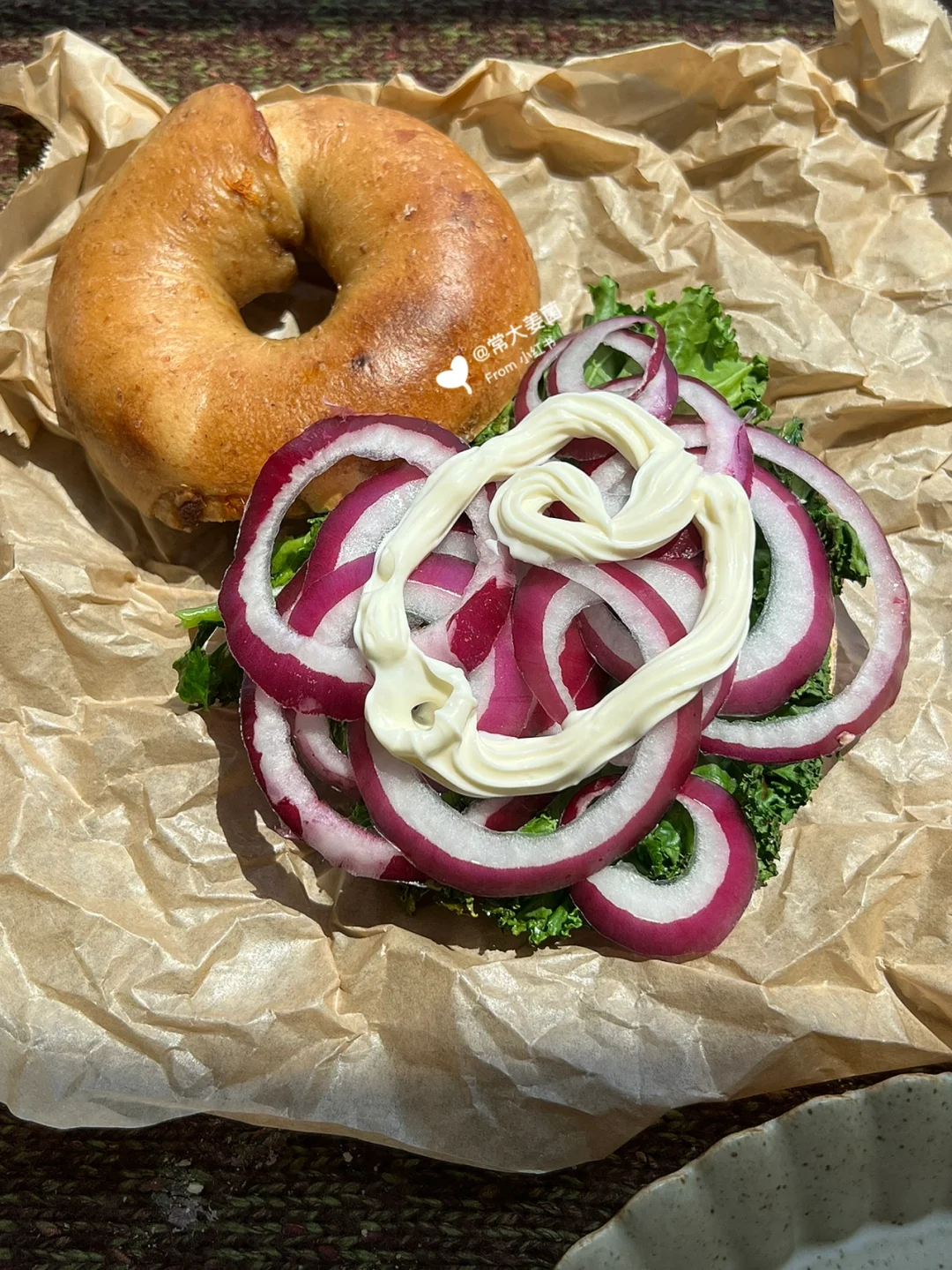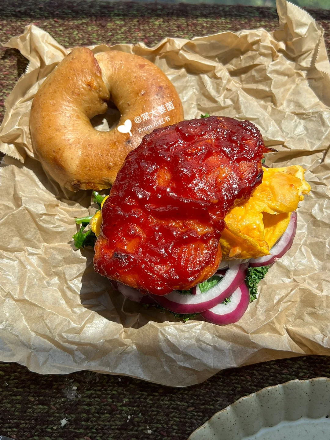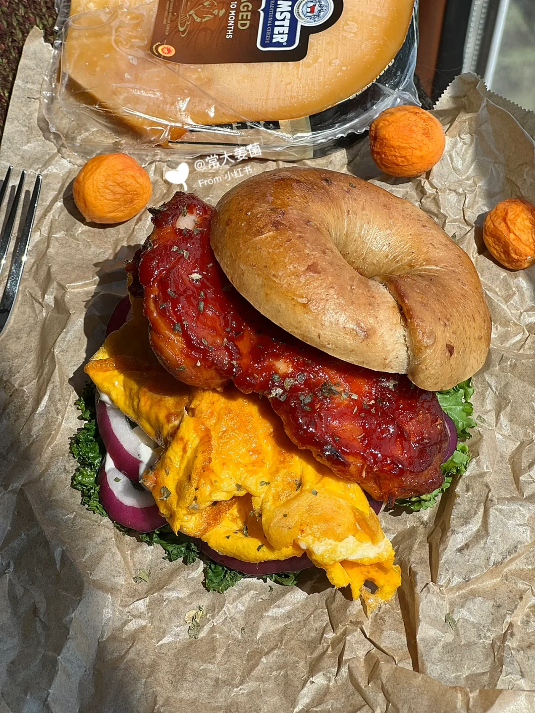 为方便及时补充能量,俺总是带个贝果三明治🥪🥯