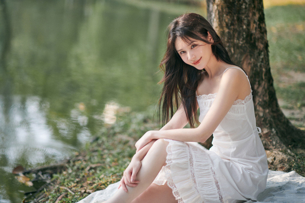白鹿,黑色抹胸裙,姐姐真的好精致甜美
