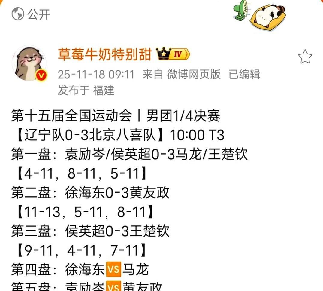 我昨天刷比赛,真的要笑晕过去。 黄友政,这哥们儿,居然有四副不一样的球拍!四副! 你说这是打球吗?这简直是开盲盒啊,对手站他对面,估计心里直打鼓:“这局……我抽到的是哪个他?” 昨天北京队两场,嘎嘎就是两个3:0,干净利落。 尤其是黄友政,前几天还把马龙他们愁得眼袋都快掉地上了,昨天突然跟换了个人似的,上来也是两个3:0,把徐海东和林高远都给收拾了。 这状态……哪是坐过山车,这简直是坐火箭。 前几天那个迷迷糊糊、让人操碎了心的“黄油”,昨天突然就进化成了“钮祜禄·黄”。 搞得我一晚上都在琢磨。 这小子…… 不会是昨天又加上谁的好友了吧?