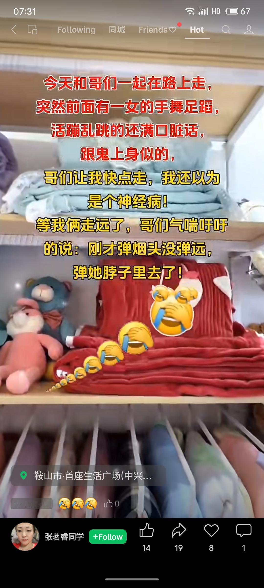 和哥们走路时,见一女子行为异常,手舞足蹈、脏话不断,我们误以为其精神失常便快步避开。走远后,哥们才坦白:之前弹烟头不小心掉进了她衣领里。