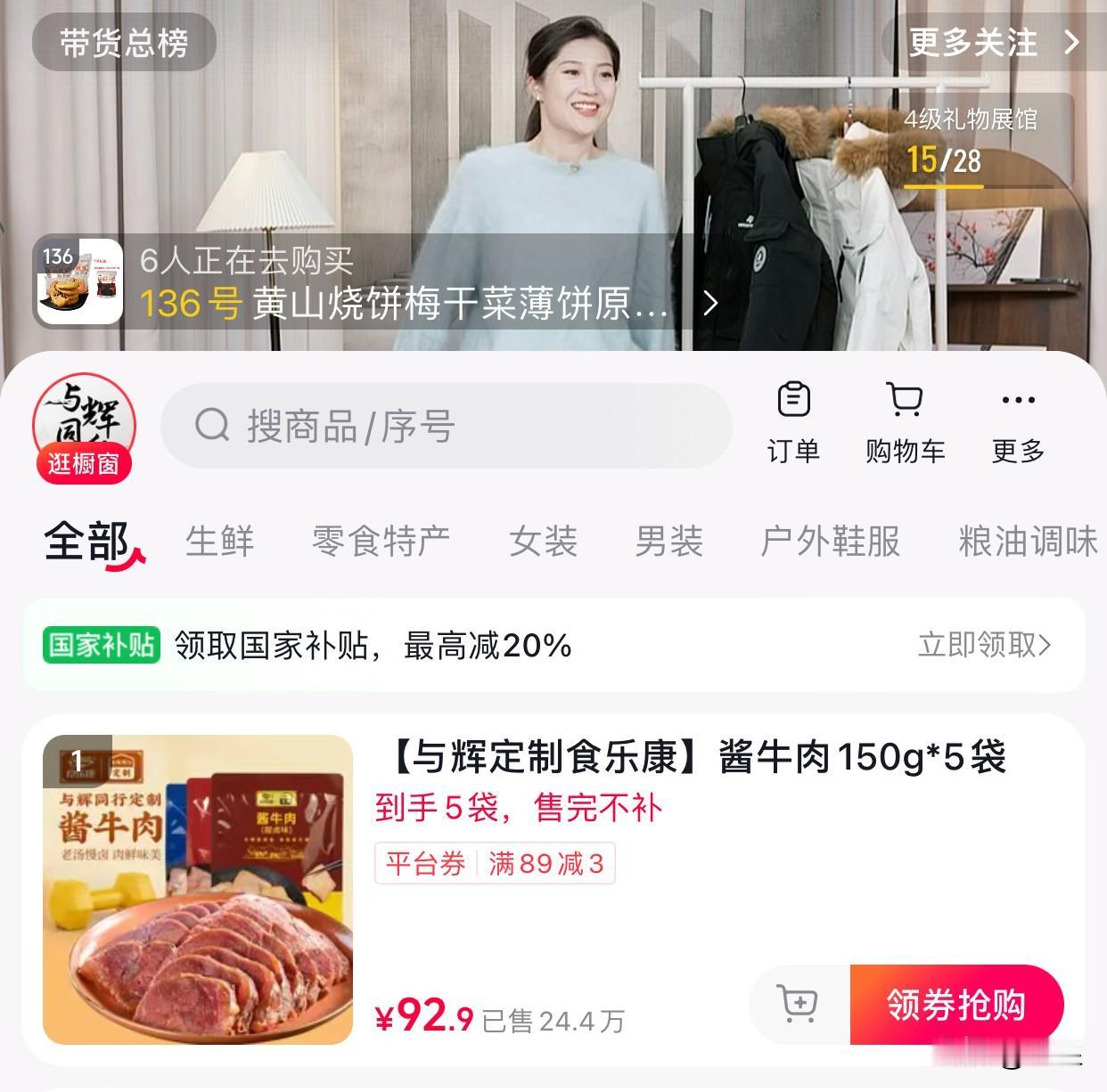 与辉同行人均铁人来的[笑哭] 盼盼从安徽回来竟然不休息 直接上早班,而且看上去很精神 一点都没有疲惫的感觉 她推荐大家如果去黄山可以坐高铁 非常方便,而且很放松 因为在车上还能欣赏沿途风景 盼盼确实是个高能量的人 工作强度再高都不忘记享受生活 今天早上还有守店福利 定制款的酱牛肉悄悄上了1万单 其他口味上来就抢光了 现在还有甜卤口味 如果有需要的同学可以去看看