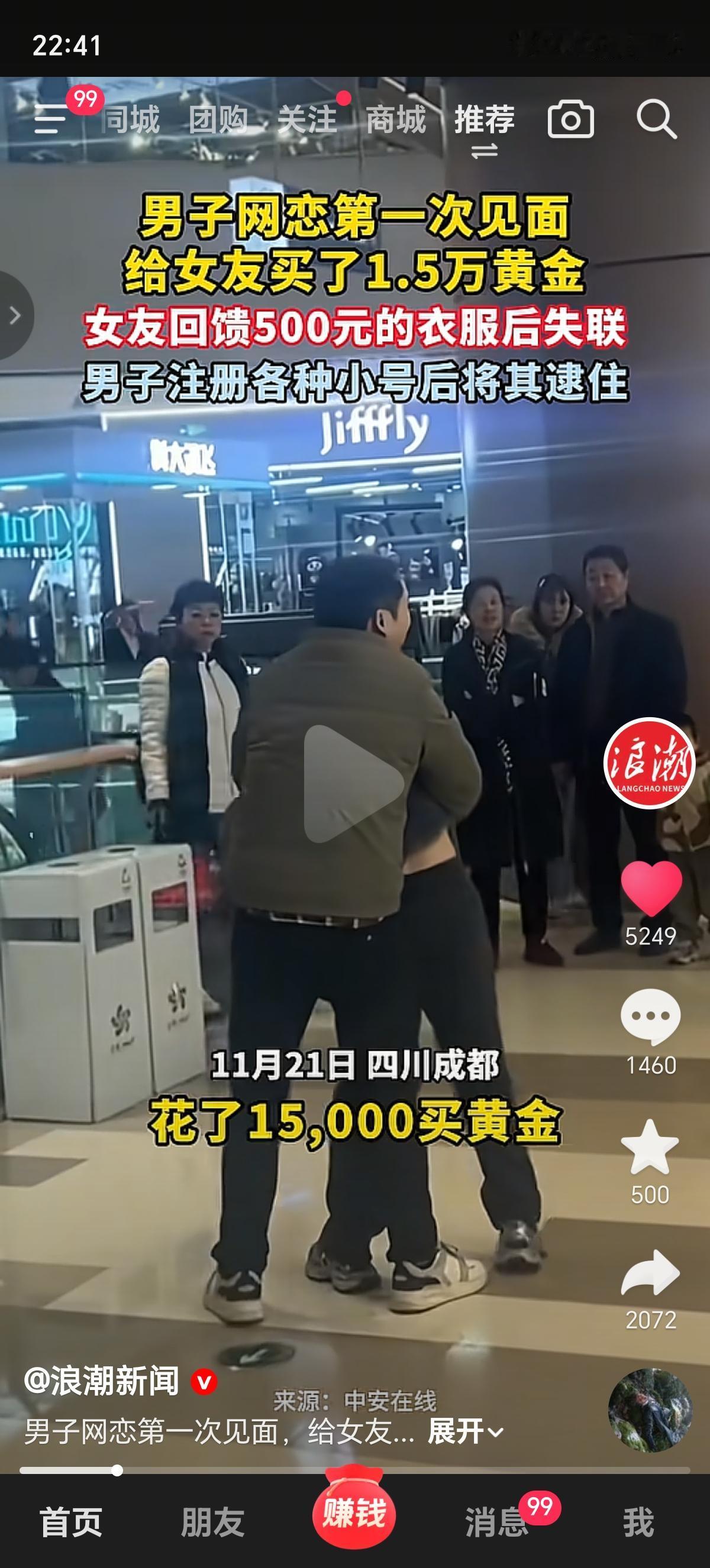 “我真心想处对象,结果被人当提款机耍了!”商场里,大哥死死拽着一个女子的胳膊,声
