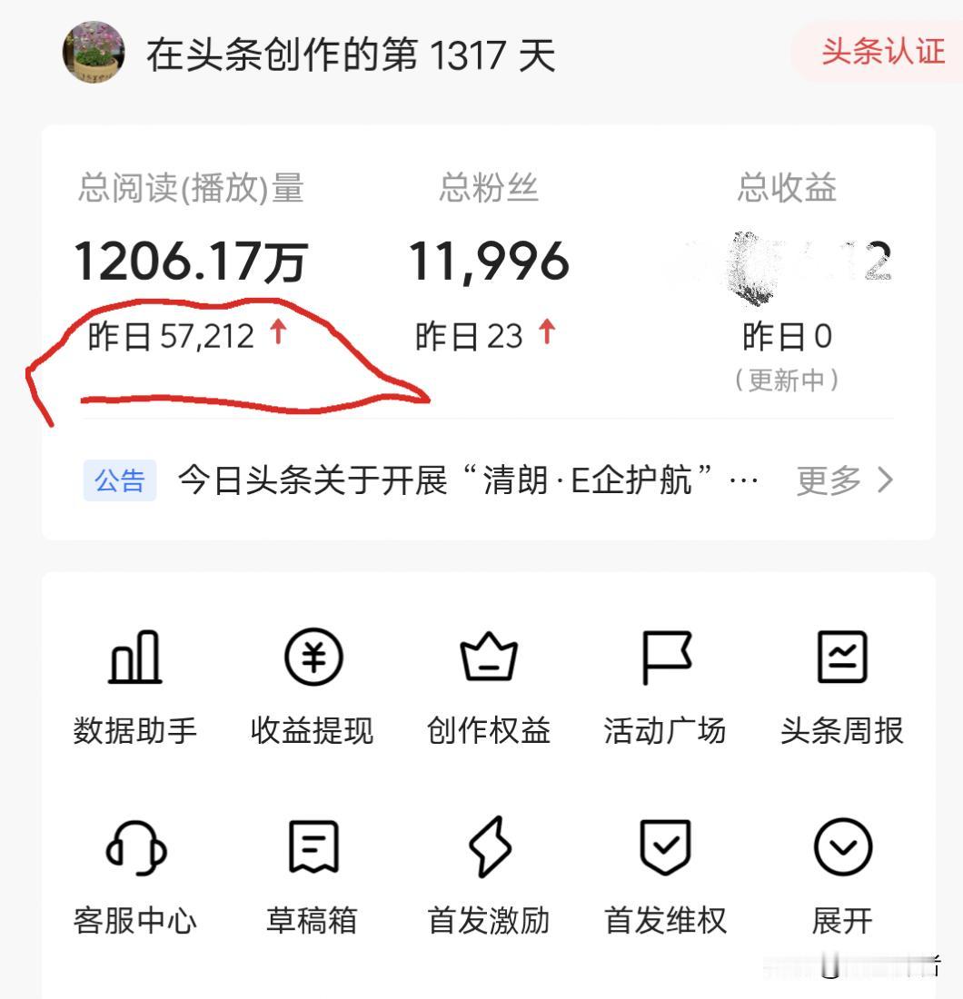 写头条什么是尾流?尾流就是24小时之前发的文章和微头条产生的阅读量。好多几十万、上百万粉丝的高收益不仅是当天作品产生的收入更重要的是靠尾流获得高收益。 好的作品可以获得平台的长期推荐和读者的点击。我在头条主要以写微头条为主。我近15天的流量全靠尾流支撑,昨天发了4篇微头条,总阅读量不超过1000,但是我账号今天的阅读量达到了57000次阅读,并收获了23个粉丝。查看作品点击率,发现有2个月之前发的作品还在继续展现和推荐,并不时就有读者朋友点赞和评论。 尾流有多重要?就是你近期不发作品,单凭之前作品的持续推荐也可以获得高收益。其中文章的推荐时长要比微头条更久,但也不乏优秀的微头条获得持续推荐。 想要产生客观的尾流,输出优秀的作品必不可少。以上是我对尾流的见解,希望可以给刚进来的朋友提供写作帮助。