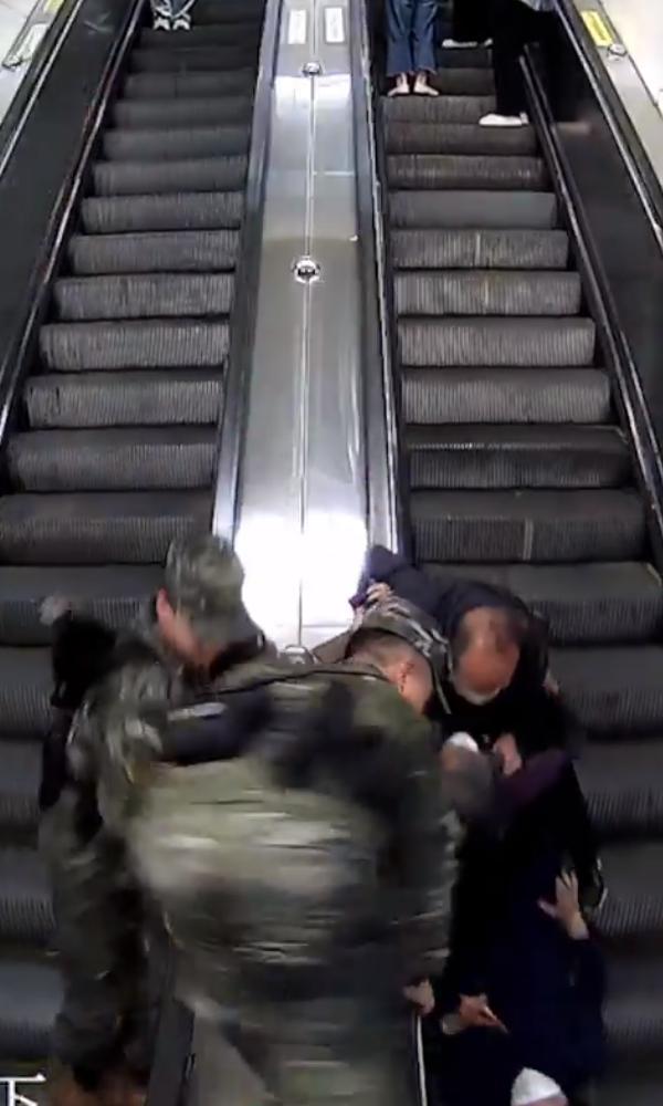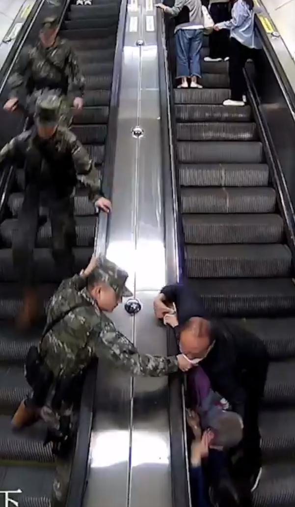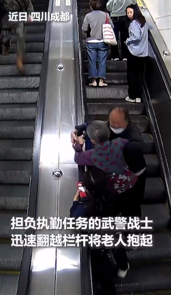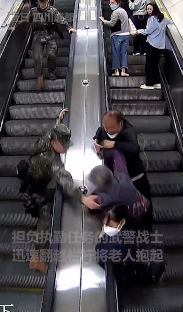 军人的风采这一幕必须点赞!武警战士飞跃扶梯,迅速出手,紧急救助倒倒老人。关键时刻挺身而出,尽显人民子弟兵的担当与温度! 手机也在这个时候滑下,不过别忘记手机了,相信他们一定给到老人手里。