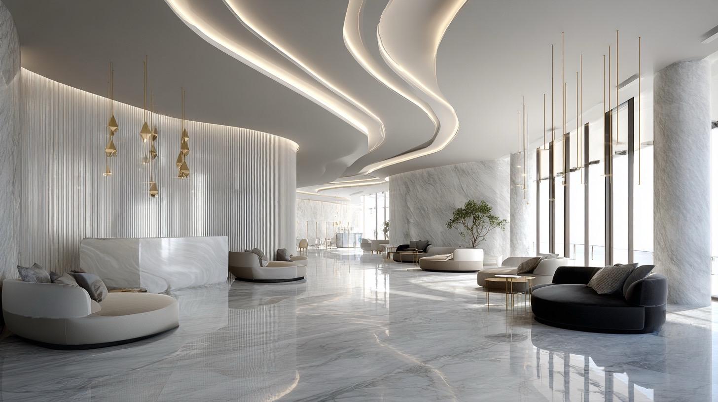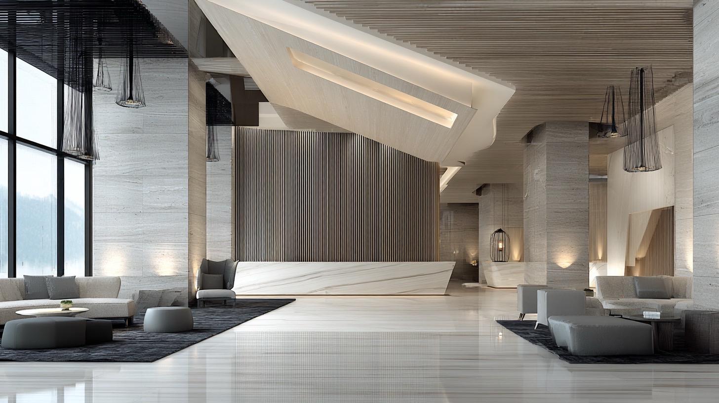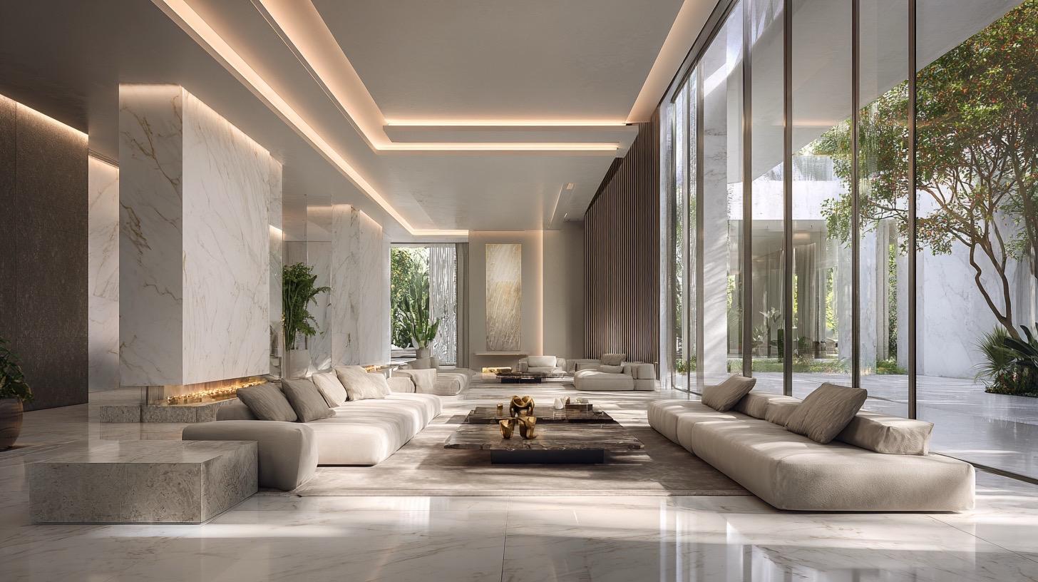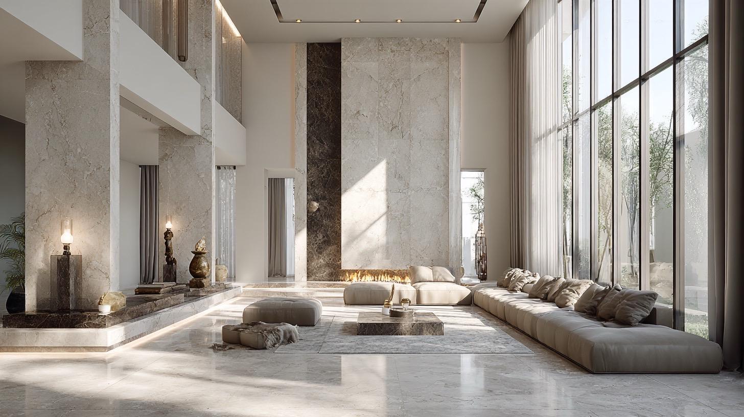 现代极简奢华|别墅与酒店的灵感融合。当石材遇见留白,当光影成为主角。 这一组图,来自我们用AI模拟的顶奢空间—— 从别墅会客厅到酒店大堂,呈现出“少即是多”的极致美感。 没有复杂装饰,没有过度设计, 只有纯粹的比例、质感、光线与秩序。 一起进入“安静的奢华”。