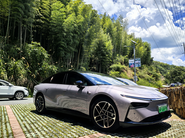 小鹏P7+侧颜照还是蛮顶的 想不到为什么一个5米多长的车拍出来感觉还是很短的样子😅,可能是前后轮距问题让他不显长。